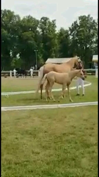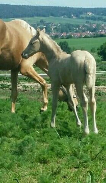 Vivien ist bei mir geboren und mit Flasche aufgezogen worden, sie ist super lieb und sehr Menschen bezogen. Als Fohlen 1a prämiert. Sie hatte schon ein bildschönes Fohlen vom Black Rubin ebenfalls Palomino und Championatsfohlen. Gebe sie schweren Herzens nur in beste Hände ab. Sie wurde ab und zu geritten ,ist total unverbraucht und hat hat tolle Bewegungen, einfach nur ein Traumpferd