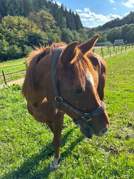 Chica 29 Jahre sucht einen Retnerplatz. Ich habe Chica wegen meiner Stute mitgenommen. Da ich aber schon 2 Pferde habe und einfach die Zeit fehlt, würde ich chica gerne die Möglichkeit geben ein passenderes Zuhause zu finden, da sie durch die Jungen nicht gut zur Ruhe kommt. Sie ist dennoch sehr sozial, ist aber eher Ranghoch. Chica ist zwar schon alt, aber mit viel Go. Sie will definitiv nicht zum alten Eisen gehören und beschäftigt werden. Reiten würde ich aufgrund ihres Alters jedoch ausschließen, bzw. nur mit tiä Rücksprache in Betracht ziehen. Mit fast 30 Jahren sollte man ihr ihren Ruhestand des reitens gönnen. Nun zu den zwei Punkten die den Preis erklären: Chica hat im Sommer 3 Zähne gezogen bekommen. Deshalb wäre es förderlich wenn sie im Winter zum Heu noch Heucobs bekommen würde. Der zweite Punkt: sie tut sich schwer mit in den Hänger steigen. Hier braucht sie viel Zeit. Da ich unterschiedliche Arbeitzeiten habe bitte eine WhatsApp und keine Anrufe.