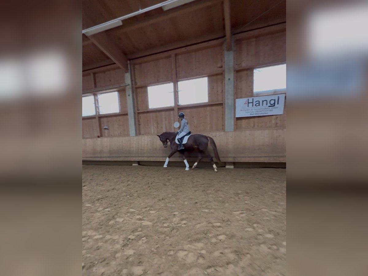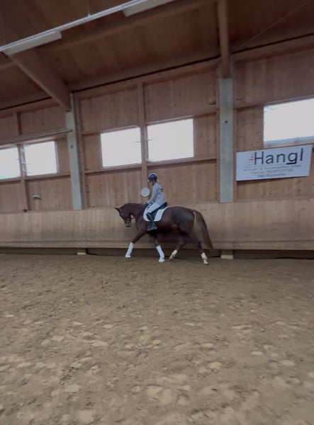 Zum Verkauf steht eine bildschöne Dressurstute, geboren 2022, in der auffälligen Farbe Dunkelfuchs mit vier weißen Füßen. Sie überzeugt durch ihren edlen Auftritt, klare Linien und eine sehr harmonische Gesamterscheinung. Diese junge Stute stammt ab von Bonderas (Bonds – Benicio – Bellissimo M), einem Vererber, der für Rittigkeit, Ausdruck und moderne Dressurpferde bekannt ist. Mütterlicherseits führt sie bestes Blut über Belanta (Belantis – Benetton Dream – Bretano II), eine der erfolgreichsten Dressurvererberlinien der letzten Jahre. Damit vereint sie Leistungsbereitschaft, Bewegungsqualität und einen ausgezeichneten Charakter. Die Stute zeigt sich altersgemäß entwickelt, mit drei guten Grundgangarten, viel Takt und natürlicher Balance. Besonders hervorzuheben sind ihre aktive Hinterhand und die bergauf gerichtete Silhouette. Sie ist aufmerksam, menschenbezogen und unkompliziert im Umgang – ideale Voraussetzungen für eine erfolgreiche Zukunft im Dressursport. Sie kennt Halle, Reitplatz, erste Stangenarbeit unter dem Reiter, Freispringen und kleine Runden im Gelände. Sitzbequem und fein an den Hilfen macht diese Stute jeden Tag aufs Neue Spaß. Dank ihrer hochwertigen Abstammung und ihres vielversprechenden Bewegungspotenzials ist sie sowohl als Sportpartner für ambitionierte Reiter als auch als interessante Zuchtstute bestens geeignet. Ein Pferd für Liebhaber moderner Dressurpferde mit Perspektive. Das Pferd steht in 82256 Fürstenfeldbruck und kann jederzeit Probegeritten werden. Barbie ist vorne beschlagen, entwurmt und durchgeimpft.