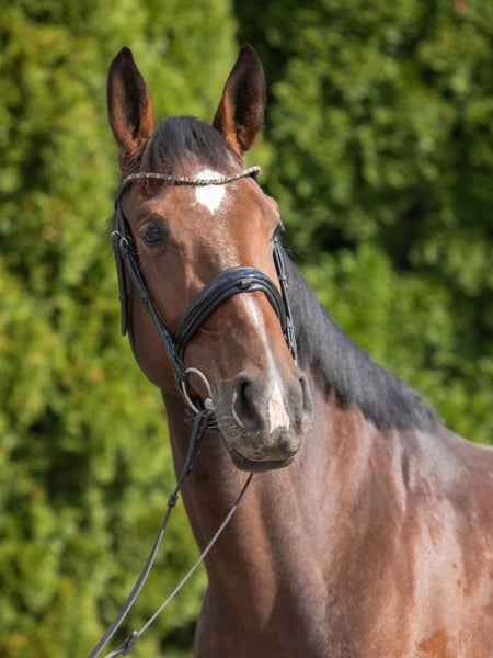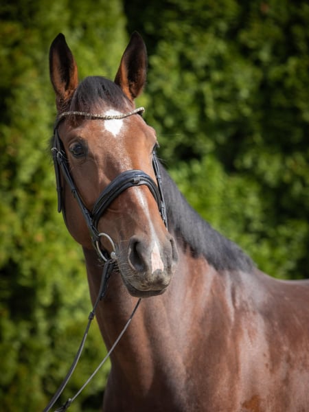 The stylish four-year-old mare already has some competition experience. She impresses with a very positive attitude towards the sport and a good bascule over jumps. She is very easy to ride for her age and is extremely kind to handle. In daily work, she brings joy to her rider, and trail rides are no problem at all. Her father "Cornet's Edition" participated in the Bundeschampionat and has been very successful in many show jumping competitions. Her mother "Zahara" is a state premium mare, who is in turn descended from the successful Holsteiner stallion "Liberator."