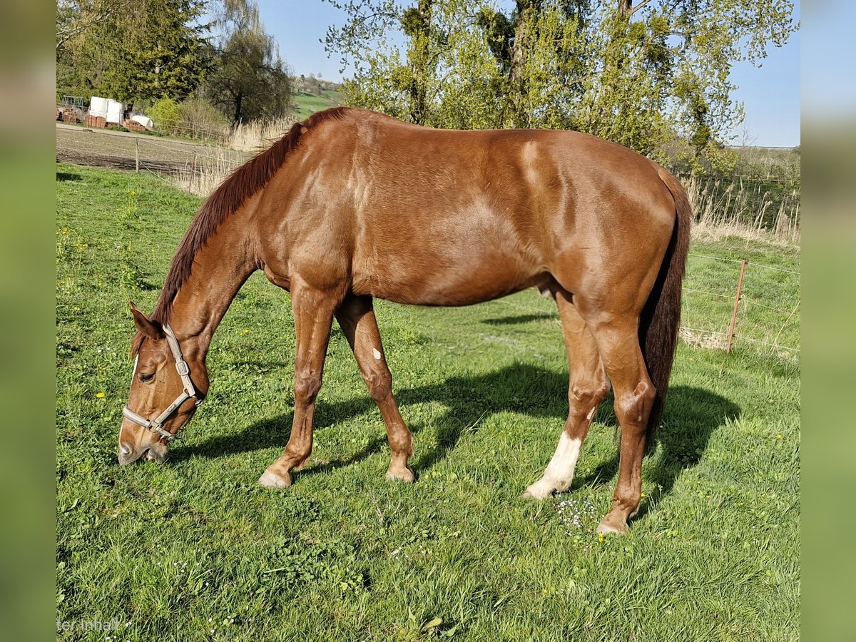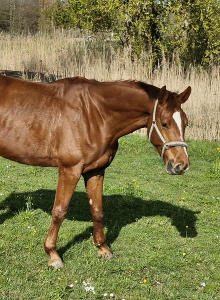 Large-framed German riding horse – Elegant chestnut mare, born 2022 For sale is a beautiful 3½-year-old German sport horse mare. With her striking chestnut coat and an impressive height of 17.7 hands, she is a true eye-catcher both visually and in terms of temperament. She demonstrates talent over fences and has three very good basic gaits. The mare is character-wise impeccable and possesses a pleasant, balanced demeanor, making her suitable for both ambitious leisure riders and competitive riders. She is also very interesting for breeding purposes. As a foal, she was awarded premium status and was reserve champion in the show jumping ring. X-ray images available! Due to a minor issue on the X-ray, she is offered at a significantly reduced price. Please feel free to contact me for further information or if you are interested.