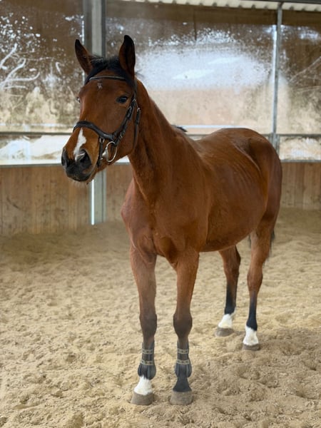 For sale is my 2021-born mare, Cantania, approximately 16.3 hh. Cantania has been in my possession since birth and is well-trained, personable, and uncomplicated. She impresses with her very calm, honest, and fearless nature, is completely herd-safe, and exceptionally well-behaved in daily handling. She has been lunged, is familiar with saddle and bridle, and always cooperates during training. She also handles loading and trailering without issues. Thanks to her composed temperament, she is also very suitable for hacking. This year, Cantania gave birth to a healthy foal. The delivery was completely trouble-free, and she is a very reliable and caring mother – a clear advantage for breeding. Pedigree with a sporting background: • Sire: Cariño – successful up to S** level with amateurs and placed at S level • Dam: Diamant Éclaire Z – successful up to M** level with amateurs and placed at M level This makes Cantania ideally suited for show jumping, dressage, eventing, as well as recreational riding. She moves very nicely in dressage, shows talent over jumps, and impresses with her clear-minded approach. ✔ X-rays from December 2023 available – no findings ✔ Healthy, well-behaved, honest ✔ Perfect as a broodmare, young horse, amateur or leisure partner A versatile young horse with excellent pedigree and a superb character, now seeking a nurturing environment to develop further.