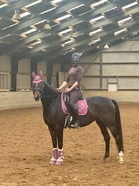Wunderschöne 5 jährige Jungstute sucht neuen Wirkungskreis. Dori wurde Anfang 2024 schonend auf das Reitpferdeleben vom Boden aus gearbeitet und Mitte letzten Jahres von einer Berufsreiterin angeritten. Dies macht sie sehr souverän. Bei mir wird sie nur Freizeitmässig geritten. Sie war letztes Jahr auch mit uns in Holland im Urlaub . Das macht ihr mehr Spaß als Halle und Platz. Sie kennt Doppellonge, Langzügelarbeit, Trabstangen und Freispringen. Derzeit steht sie tagsüber bei Wind und Wetter draußen und kommt abends in ihre Box. Verträglich ist sie mit allem und jedem. Beim Schmied und auch beim Tierarzt ist sie vorbildlich . Das Verladen muss aber noch geübt werden. Wenn sie einmal drin steht ist es gut. Ich trenne mich nur von ihr weil ich an meiner finanziellen Grenze angekommen bin.