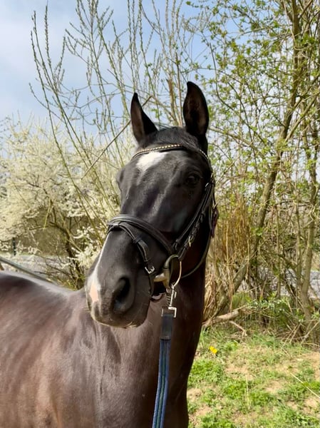 ***Inquiries are gladly accepted via WhatsApp at 0176 20286317 or 0176 20286317.*** Catalina is a beautiful, bright bay mare with a lot of talent over fences. She is very people-oriented, comes out daily with a mare group, and is eager to please. She enjoys working, responds well to lunging, and is currently barefoot. At competitions, she already achieved wins and placings as a 5-year-old, ranging from introductory tests to jumping horse class A**.