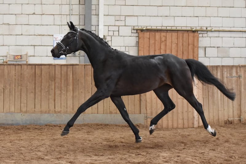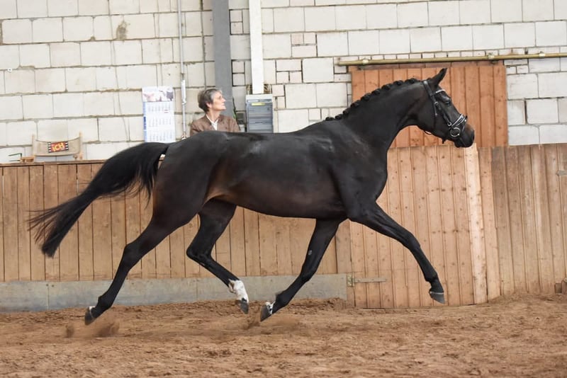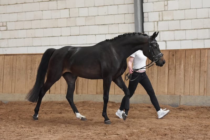We are selling this exceptional, typey and movement-rich State Premium mare with SLP in LK I due to a change in breeding focus, and it is with a heavy heart. Her breeding is proven, as she already produced an outstanding champion foal by Bon Courage in 2025, and currently has a colt by Kjento at her side. The mare is homozygous dark, so she will not produce foals with a chestnut coat. She is currently inseminated with Fenomenal for 2027. The mare can be purchased either with or without her foal. She is ideal also for novice breeders, as she is very easy to handle and passes on her wonderful temperament to her foals. There is no video available, nor will one be made. Interested parties are welcome to contact us. The mare is fully rideable and was very well-behaved under saddle, though she would need to be re-trained. We prefer to sell her to a breeder, as she thrives in her role as a dam.