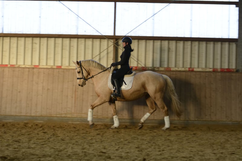Diese wunderschöne 6 jährige Stute von Diamond Touch x Roadster ist ein absoluter Hingucker. Sie besticht durch ihre Sonderfarbe und ihren wunderschönen Kopf. Sie ist ca 1,65 und eher im Hengsttyp stehend, gut gebaut und mit gutem Fundament ausgestattet. Sie ist aktuell auf solidem A Niveau ausgebildet in der Dressur, sie ist leicht zu Reiten, sucht von sich aus die Anlehnung und verfügt über 3 gute Grundgarten. Sie hat bereits den ein oder anderen kleinen Sprung absolviert und zeigt sich auch hier motiviert. Die junge Dame benötigt erfahrene Menschen, die ihr die nötige Sicherheit im Umgang geben, wobei sie nie böse reagiert. Sie ist kein reines Anfängerpferd und möchte gerne gefördert werden. In der Herde ist sie sozial und leicht zu händeln. Die Stute wird aktuell weiter ausgebildet und zeig sich auch hier motiviert und lernbereit. Mit steigender Ausbildung steigt natürlich auch der Preis.