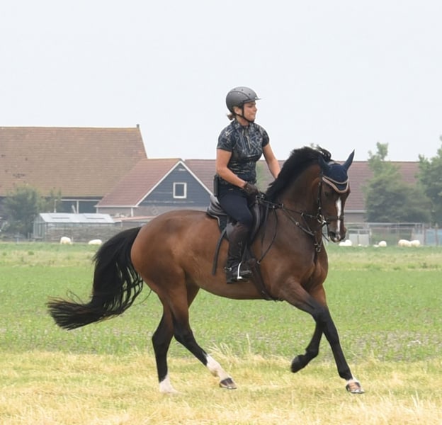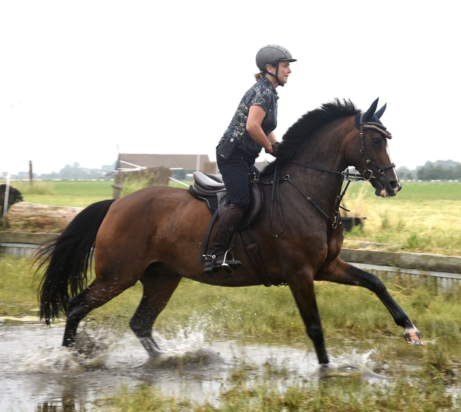 Vater. : Dark Pleasure Vater/ Mutter : Kennedy Dressurmäßig ist die Stute bis L/M Niveau ausgebildet, dabei sehr leichtrittig - jedoch mit „normalen“ Grundgangarten ausgestattet. Ansonsten ist ihre Leidenschaft das Gelände. Sie ist dort verlässlich, geht überall hin- egal ob alleine oder in der Gruppe. Sie ist sehr lauffreudig und ausdauernd. Springen ist nicht ihr Ding, da sie einerseits nicht die Talentierteste ist und sich andererseits sehr dabei aufregt. Sie ist kein Anfängerpferd, da sie sensibel ist. Bei unsicherem Reiten fühlt sie sich unwohl und reagiert dadurch angespannt und stressig. Sie buckelt oder steigt NIE. Aufgrund gesundheitlicher Probleme meinerseits wurde sie in den letzten Monaten wenig und unregelmäßig geritten. Wenn sich dies wieder ändert, lässt sie sich entspannt und mit Leichtigkeit reiten. Sie war die letzten Jahre im Sommer 24/7 auf der Weide und im Winter tagsüber draußen. Sie ist entwurmt, geimpft und war kürzlich beim Zahnarzt. Ein aktueller TÜV ohne Röntgenbilder ist vorhanden: ohne Befund TEL.: 017749-38373