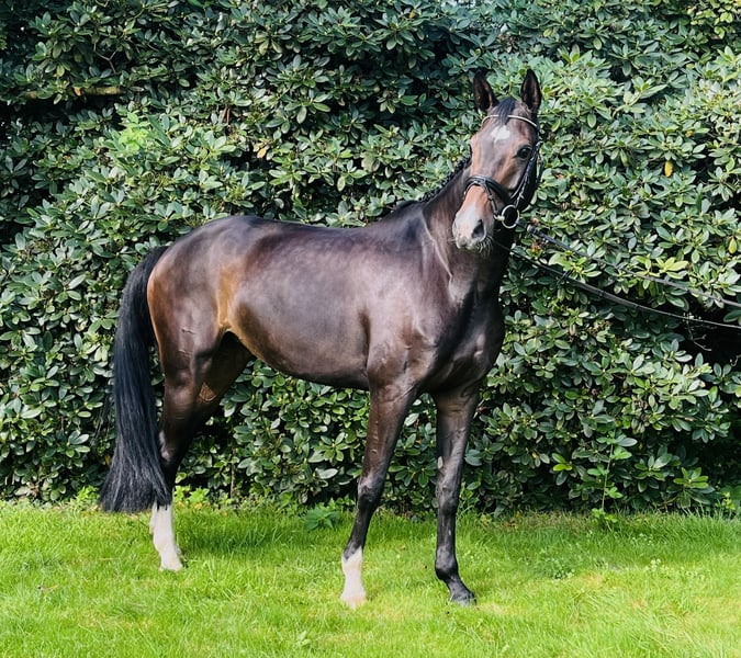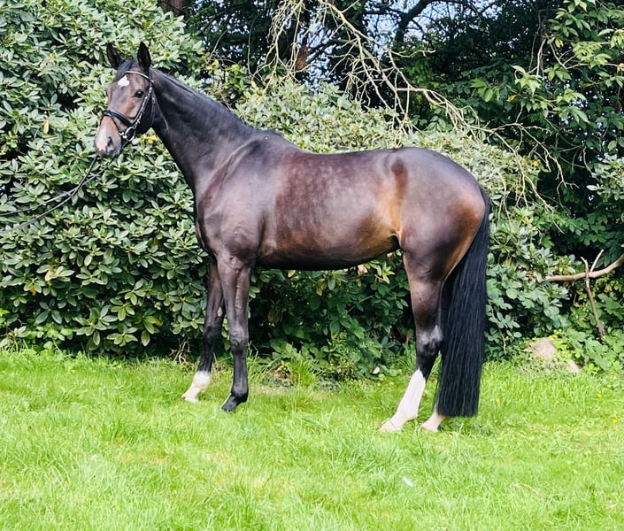 Zum Verkauf steht eine 8-jährige Stute von Belissimo M (M. v. Godolphin). Trotz ihrer Größe von 1.75 m ist sie fein zu reiten und daher optimal für eine zierliche Amazone geeignet. Die Stute wurde vierjährig schonend angeritten und fünfjährig erstmals auf Turnieren vorgestellt. Neben Sieg und Platzierungen in Dressuren der Klasse A ist sie bis Springpferde L platziert. Sie ist nicht nur ein toller Partner für den Turniersport, sondern auch für Kuscheleinheiten und entspannte Ausritte - wo sie sich bisher stets unkompliziert und verlässlich zeigte - jederzeit zu haben. Mit anderen Pferden ist die Stute absolut verträglich. Selbstverständlich ist sie auch Schmiede- und verladefromm ( kennt Anhänger und LKW). Es wird also ein superbraves Junioren- oder Amazonenpferd angeboten, welches nur in allerbeste Hände abgegeben wird.