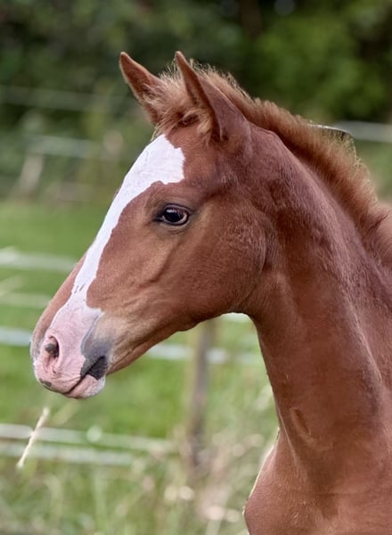 schickes, ausgefallenes und kompaktes Stutfohlen von Alle Farben x Arcachon NRW (Ampere x Hotline) x Farewell lll x Florestan Stutenstamm der Nizza (Be my Dancer - Hengststation Beckmann)