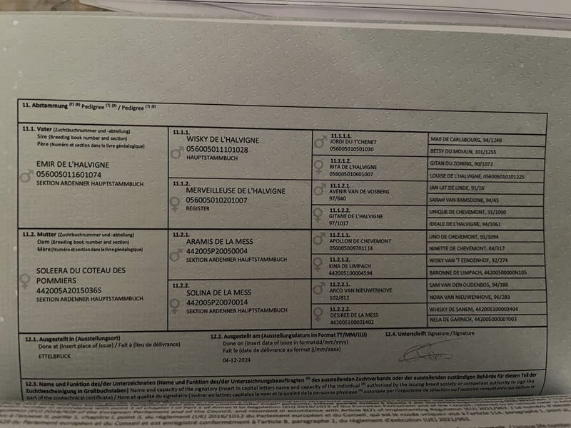 Zum Verkauf steht ein Luxemburger Ardenner Hengst von 05.2024 mit voller Abstammung. Er ist artgerecht in der Gruppe aufgewachsen und kann robust gehalten werden. Die Box kennt er aber auch. Er ist dem Menschen zugewandt und sehr freundlich. Er ist halfterführig, kennt angebunden stehen und lässt sich verladen. Er hat ein gutes Gebäude und schöne Bewegung. Krankheiten oder Allergien sind nicht bekannt. Eine AKU darf gerne gemacht werden. Gerne anrufen oder eine Nachricht senden 0157 36803742 Alle Angaben ohne Gewähr, Preisänderungen vorbehalten, Transport möglich, Onlinekauf möglich