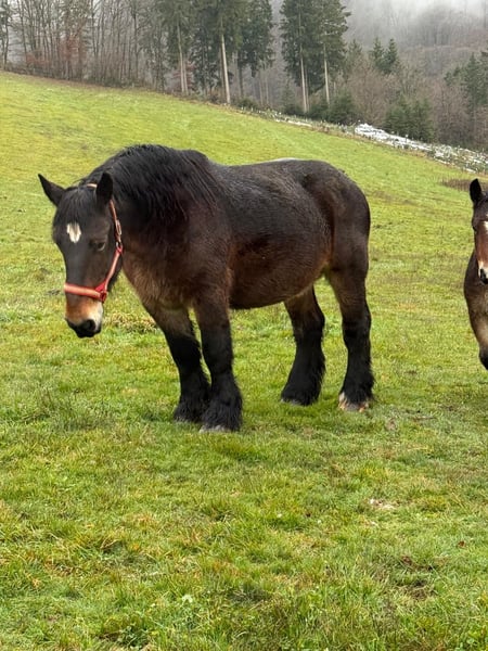 For sale is a 12-year-old (born May 2013) Luxembourg Ardennes broodmare, approximately 1.60 m tall, with excellent pedigree. She has already produced several beautiful foals and is very easy to handle. She was covered by a stallion again this year and was confirmed pregnant at her last check-up. Breeding certificate available, of course. She has a good conformation and also moves nicely. She has always been healthy and is a good mother. Her current foal will be weaned soon or can be purchased together with her. She is very trusting and completely well-behaved in handling. Loading and transport pose no problem. She can be kept robustly. No known illnesses or allergies. An ultrasound examination (AKU) can be performed upon request. Please call or send a message to 0157 36803742. All information provided is without guarantee, subject to price changes. Transport possible, online purchase available.