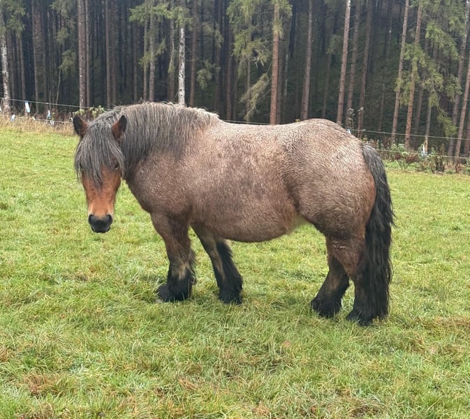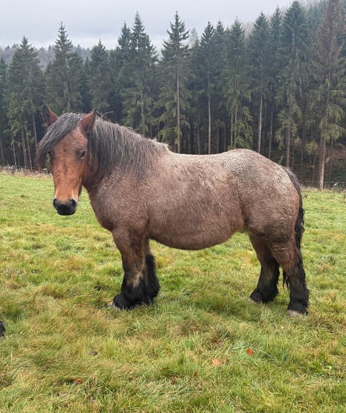 For sale is a 4-year-old (born May 2021) Ardennes mare, approximately 150 cm tall, with a beautiful coat and a strong build. She has previously foaled and is currently in foal again for 2026. A breeding license is available. She has an excellent and full pedigree. She is very well-behaved in handling and could easily be used as a riding or driving horse soon. She has not been worked yet. Her temperament is calm and gentle, and she accepts handling and loading without issues. The small brown stallion is also for sale. No known health issues or allergies. An ultrasound examination can be performed upon request. Please feel free to call or send a message to 0157 36803742. All information is provided without guarantee. Prices are subject to change. Transport can be arranged, and online purchase is possible.