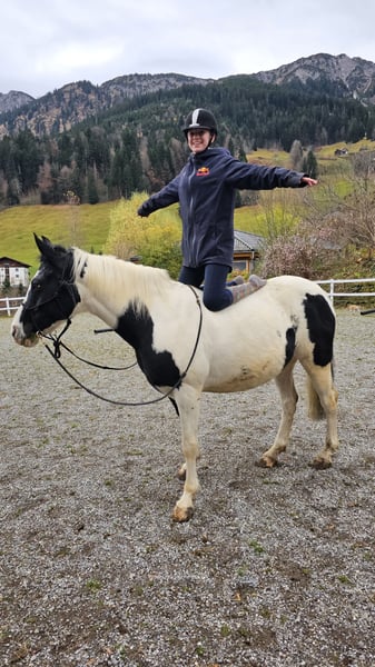 Schweren Herzens verkaufen wir unsere Kessy. Kessy war nun zwei Jahre bei uns. Bei ihrer Vorbesitzerin wurde sie als Therapiepferd eingesetzt und lebte im Offenstall in einer harmonischen Herde. Auch wir wollten sie gerne in unsere bestehende Laufstall-Herde integrieren. Leider hat sich das aufgrund unserer sehr gefestigten Herdenstruktur nicht so entwickelt, wie wir es uns gewünscht hätten. Kessy hat einen freundlichen und sanften Grundcharakter, benötigt aber einen Reiter, der sich klar durchsetzen kann. Bei unsicheren oder unerfahrenen Reitern übernimmt sie sonst gerne selbst die Richtung. Ihre Gänge sind sehr angenehm zu sitzen und bereiten viel Freude. Wir wünschen uns für Kessy einen selbstbewussten, einfühlsamen Menschen, der ihr Sicherheit gibt und ihren Charakter zu schätzen weiß.