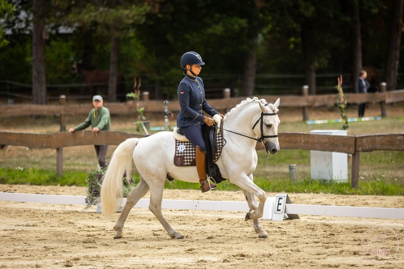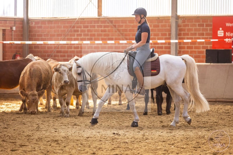 Zarter kleiner Hengst mit Flügeln, Ikarus ist ein sehr temperamentvoller Sohn seines Vaters. Mit dem selben sorgenvollen Augenausdruck wie Ufano schaut er sich alles gern erst einmal an. Um dann die erlernten Dinge auch durchzuziehen. Das Pferd ist in der Ausbildung derzeit sicher bis WE-A (gesiegt und platziert). Er arbeitet bereits gut am Rind und wird von uns weiter mit Freude gefördert. Er besticht durch ausserordentlich gute Bewegungen in Dressur wie Dressurtrail. Zeigt sich auf internationalen Turnieren aber noch immer ein wenig beeindruckt. Was wir gut finden, er wird weder frech, noch übereifrig. Er überlegt und versteht. Er kommt optisch eher nach seinem Großvater Jouvas und auch die schwebenden Bewegungen sind wohl aus der Seite der Anpaarung. Mutter Tres Jolie du Issel ist eine super zuverlässige Stute in Gelände, auf Messen, am Rind. Meine persönliche Lebensversicherung, aus der ich mit Gier mehr Fohlen hätte ziehen sollen. Da unsere Pferde aber maximal alle 2 Jahre nach Abschluss ihrer Ausbildung zur Zucht eingesetzt werden, haben wir bisher erst 4 ihrer wundervollen Fohlen. Für die Qualität leider wenig, aber für meine Einstellung zum Pferd ist jedes davon ein echtes Juwel. Wir sind gespannt, wohin seine Ausbildung in der Kategorie Arbeitspferde / Working Equitation mit diesem Pferd geht. Vielversprechend, feinfühlig, HOT. Eine kleine Granate aus der Camargue.