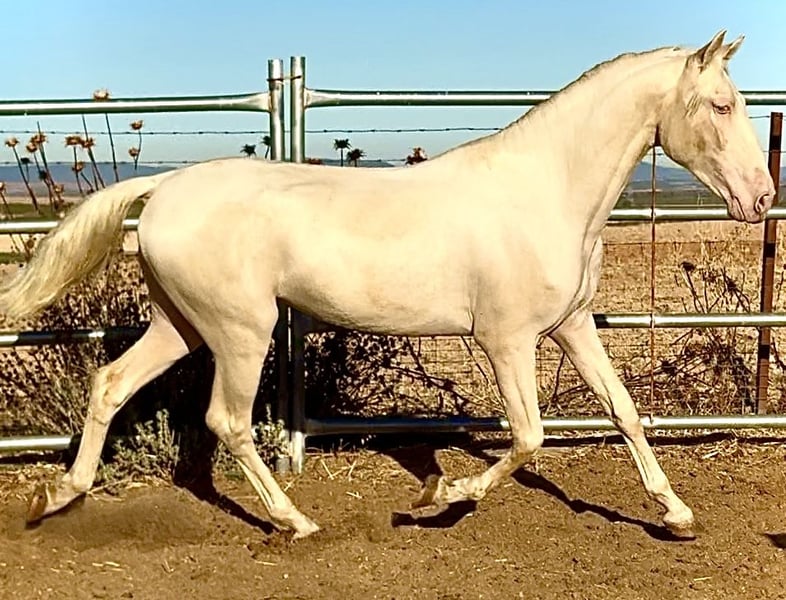 Potro Lusitano Albino Cremello El potro tiene PASAPORTE EUROPEO MUY NOBLE MUY MANSO Tiene una alzada actual de 1,59-1,60 cm Cumplirá los 2 años en Febrero de 2026 Padre 1,73 Madre 1,68