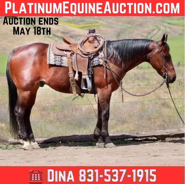 ONLINE AUCTION Place your bids at www.PlatinumEquineAuction.com Starting Bid $3500 Auction ends May 18th, 2025 Need a new saddle? Check out White Rock Saddles on our website or Facebook! Avatar is a stunning frosted roan gelding who is ready to steal your heart. Standing at 15 hands and just 9 years old, this friendly and kind horse is the perfect addition to any family. With his unmatched reliability, Avatar can handle any trail or water crossing with ease, even when wildlife is nearby. He excels both alone and in groups, making him an ideal partner for beginners while still offering excitement for more advanced riders.In the arena, Avatar showcases his fun side with smooth lead transitions, stops, and turnarounds. His versatility shines as he effortlessly completes ranch tasks such as cattle gathering, branding, and roping. With a willingness to take on new challenges, Avatar’s eagerness makes him stand out among other horses. Fearless in any setting, Avatar confidently navigates busy streets and crowded areas without hesitation. No obstacle is too daunting for this seasoned horse; whether it’s walking over tires or bridges, he approaches them with confidence and ease. Even when presented with trail obstacles like balls or tarps, Avatar doesn’t shy away but instead embraces the adventure that awaits.Not only does he excel in riding skills but also proves to be a dream when it comes to loading and tacking up. Comfortable in any setting, Avatar has a calm demeanor that makes him easy to handle by anyone.Don’t miss out on the opportunity to meet this exceptional horse! Contact Longhorn Ranch Dina at 831-537-1915 located in Paicines CA to schedule a meeting with Avatar. Whether you are looking for a reliable trail companion or an all-around versatile horse for ranch work or competition purposes, Avatar has it all. ONLINE AUCTION Place your bids at www.PlatinumEquineAuction.com Starting Bid $3500 Auction ends May 18th, 2025 Need a new saddle? Check out White Rock Saddles on our website or Facebook!