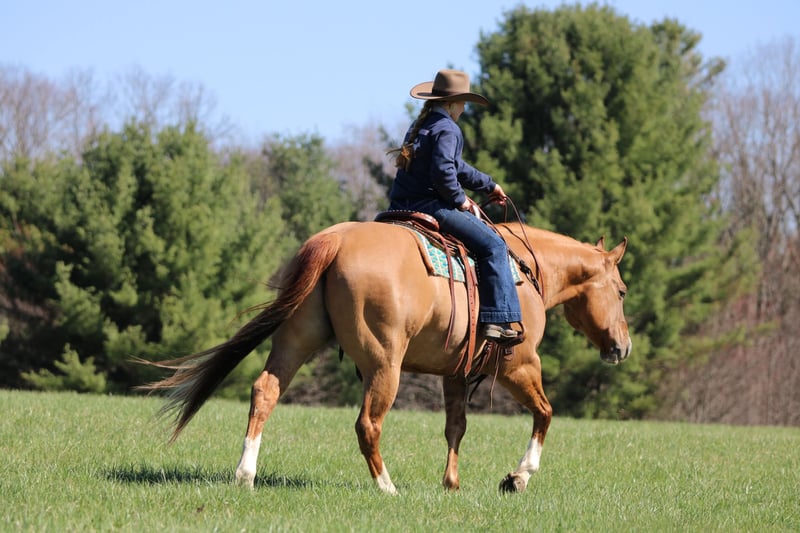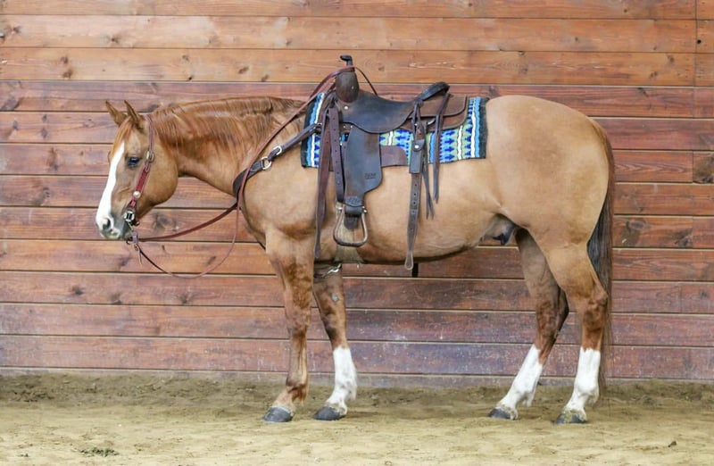 Dual Dash Dun It, un potro AQHA de 10 años y 1,65 m de altura, de color dun rojo.