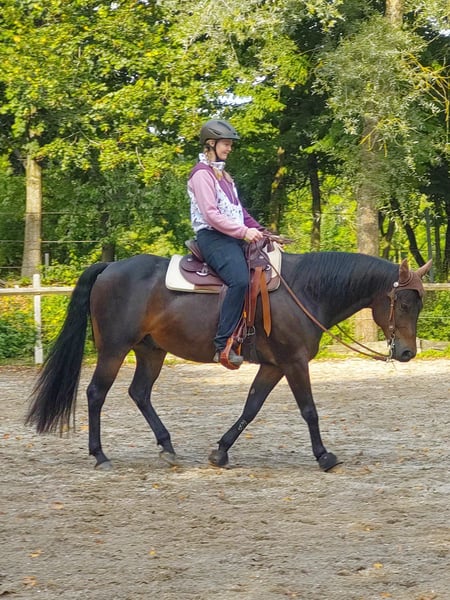 Met pijn in het hart zoek ik voor mijn 9-jarige American Quarter Horse ruin (ongeveer 1,53 m) een passend, langdurig thuis. Of My Frost Is Dock alias Johnny is een zeer mensgerichte, gevoelige ruin die een hechte band opbouwt met „zijn“ mens. Hij wil graag gefallen, is leergierig en heeft een zeer goede werkhouding. Momenteel wordt hij recreatief gereden in de westerndiscipline, gaat graag het buitengebied in (met een ervaren ruiter) en werkt gemotiveerd in de grondwerktraining. Hij is geen beginnerspaard, maar heeft een rustige, duidelijke en empathische eigenaar nodig die hem veiligheid biedt en plezier haalt uit samen groeien. Johnny is sociaal, dominant maar eerlijk en speelt graag. Hij staat momenteel in een paddock met schuilstal en zou ook in de toekomst in een kleine, stabiele ruinengroep moeten wonen met voldoende bewegingsmogelijkheden. Drachtige merries zouden niet permanent in direct contact moeten staan. Gezondheidsmatig is hij gediagnosticeerd met MIM (P3/P4), momenteel zeer goed ingesteld en in het dagelijks leven niet beperkt. Regelmatige tandartsbezoeken en vaccinaties worden altijd uitgevoerd. Hij is momenteel hoefsmeden en is ook bij mij lange tijd met duplos bekleed en beslagen geweest. Hij is smid en verlading is geen probleem. Johnny wordt verkocht samen met zijn passende maatzadel, bit en andere accessoires. Ik wens voor Johnny een eigenaar die hem ziet, hem ondersteunt en hem de tijd geeft die hij verdient – als partner en niet als „werktuig“. Deze beslissing is mij niet gemakkelijk gevallen en komt niet voort uit tijdgebrek, maar uit de wens om hem op de lange termijn recht te doen. Plaats gaat voor prijs. Bij serieuze interesse hoor ik graag via een persoonlijk bericht, waarin je iets over jezelf en de mogelijke toekomstige thuis vertelt.