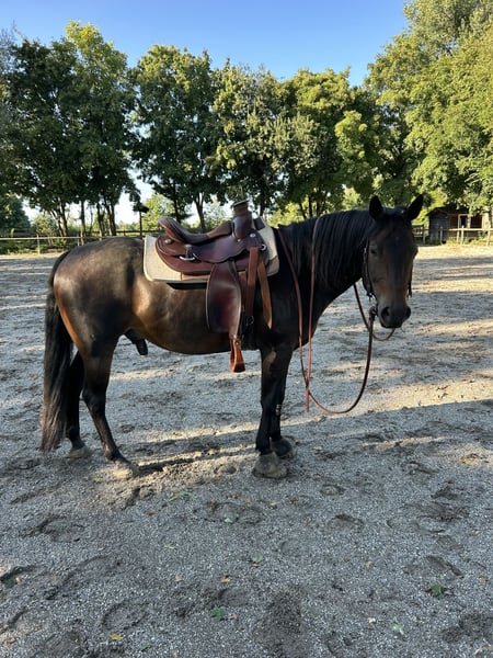 With a heavy heart, I am looking for a suitable, long-term home for my 9-year-old American Quarter Horse gelding (approximately 15.3 hh). My Frost Is Dock, also known as Johnny, is a very affectionate and sensitive gelding who forms a close bond with his handler. He wants to please, is eager to learn, and has a very good work attitude. Currently, he is ridden recreationally in Western riding, enjoys hacking out (with an experienced rider), and works motivatedly in groundwork. He is not a beginner’s horse but requires a calm, clear, and empathetic person who can provide him with security and enjoys growing together with him. Johnny is social, ranks high but is fair, and enjoys playing. He currently lives in a paddock with access to a small, stable herd of geldings and should continue to have sufficient turnout in a small, stable group of geldings. Mares should not be kept in permanent direct contact. Health-wise, he has been diagnosed with MIM (P3/P4), which is currently well managed and does not limit him in daily life. Regular dental care and vaccinations have always been maintained. He is currently barefoot but has previously been shod and wrapped with Duplos. He is easy to shoe and load. Johnny will be handed over with his matching saddle, bridle, and other accessories. I am looking for a person who truly sees him, supports him, and gives him the time he deserves—as a partner, not just a “workhorse.” This decision was not easy and is made not due to lack of time but out of a desire to do right by him in the long run. Priority goes to the right home over price. If you are genuinely interested, I look forward to receiving a personal message where you tell a little about yourself and the potential future home.