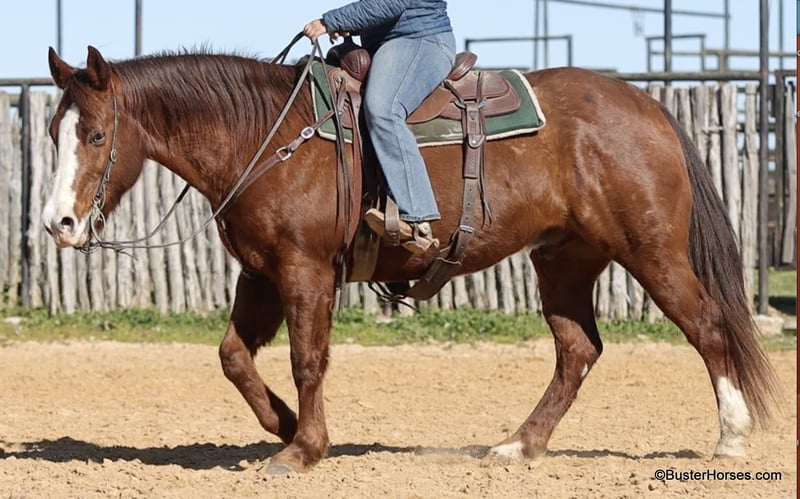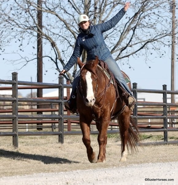 ONLINE AUCTION Place your bids at www.PlatinumEquineAuction.com Starting Bid $3500 Auction ends February 16th, 2025 Need a new saddle? Check out White Rock Saddles on our website or Facebook! Root Beer is a big thick made 9 year old, 15.1h stunning gelding! He is gentle every time you grab him and can live for weeks turned out to pasture and you can just catch him saddle him and go. He has the sweetest kind personality, and wants to be your friend and is in your pocket all of the time. He is the one that comes up to the fence just to spend time with you and he loves any attention you give him. When you pull in the driveway, he comes over just to see you in the truck! He is broad and comfy to ride, does not go a single tiny inch faster than you want to go, he is content to walk and jog around all day on a big loose rein. He is exceptionally good riding down the side of the highway and riding into town and around and in traffic. He hops right on the trailer like a seasoned old gentleman, and he is extremely easy to saddle, bridle, and will stand next to anything quietly while you climb on! He happily crosses water, and will ride anywhere you want him to in a group of horses, or he is also extremely comfortable and quiet and relaxed riding out all alone. Zero issues worrying about the barn or leaving his buddies. He is also super cozy and easy to ride bareback, we have thrown a halter on him and swung up on him many times. Please feel free to call us anytime if you have any questions about Root Beer, contact Buster Horses Ashley 214-605-7174 Root Beer has a full set of shoes on, his teeth were just done by our equine dentist this week, he was just shod last week, and he also was dewormed at that time. He is in great shape, a little on the fat side – and is ready to go to work doing whatever job you have for him. Watch his video, and to see additional videos, go to our website: BusterHorses.com or our Facebook page Buster Horses Root Beer is located in Weatherford, TX – one hour from Dallas / Fort Worth International Airport. He is an easy day trip, or fun overnight trip to come and try out, from anywhere! We are experienced, knowledgeable sellers, and we can help with quickly arranging affordable shipping to any buyer’s location – we have experience shipping worldwide – including regularly to Hawaii, Canada, Mexico, Europe, and South Africa. ONLINE AUCTION Place your bids at www.PlatinumEquineAuction.com Starting Bid $3500 Auction ends February 16th, 2025 Need a new saddle? Check out White Rock Saddles on our website or Facebook!
