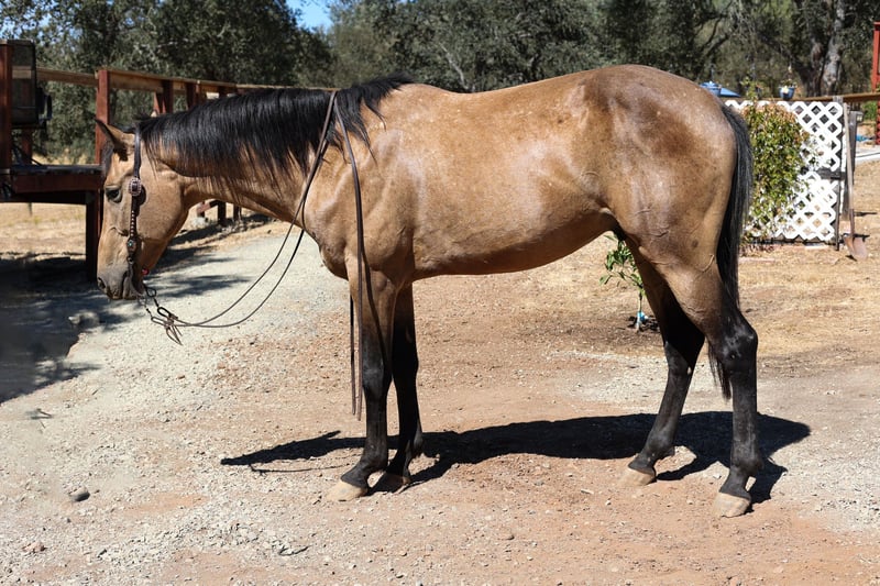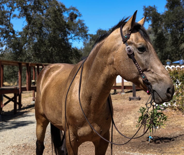 ONLINE AUCTION Place your bids at www.PlatinumEquineAuction.com Starting Bid $3500 Auction ends September 22nd, 2024 Need a new saddle? Check out White Rock Saddles on our website or Facebook! Bullseye: Your Dream Trail Horse Awaits! Meet Bullseye, yes if first thing coming to mind is toy story this is the human version of Woody’s trusty steed. This 8-year-old grade gelding is the ultimate furry companion and personality will make him your barn favorite. Standing at approximately 15.1 hands (will measure to confirm), Bullseye boasts a stunning golden coat and soft, gentle eyes that will melt your heart. He’s as reliable as they come – a true partner for any adventure. Bullseye is a joy to ride, with a fluid gait and smooth transitions. He excels on challenging terrain, having navigated steep, rugged trails with ease. He’s desensitized to a variety of obstacles, including tarps, logs, and bridges, and remains calm when faced with unexpected sights and sounds. Whether you’re riding through town or exploring the wilderness, Bullseye is your rock. Previous owner was messing around on the heel side with him. He has had guns shot off of him. This charming gelding has a bit more of a forward pace, he has a nice stop and turn, if you can get up on him you should have no issues riding him! He collects elegantly and moves with grace. Bullseye is a breeze to handle, standing quietly for saddling, bridling, and bathing. He’s an expert traveler, hauling like a seasoned pro. What truly sets Bullseye apart is his kind, affectionate nature. He adores attention and thrives on companionship, making him the perfect partner for a rider seeking a long-term bond. He has no mean streak whatsoever – just a genuine desire to please and connect with his human. The horses in our care are extensively trailered and exposed to a variety of environments to ensure their confidence and calm demeanor in new situations. Bullseye is ready for his next great adventure – could it be with you? Key Features: * 8-year-old grade gelding * Reliable and trustworthy – a true trail horse * Comfortable barefoot or shod * Experienced with rugged terrain, town riding, and loud noises * Smooth gaits, excellent stop and turns * Easy to handle for all horse care tasks * Rides bareback, collects with elegance * Hauled extensively to new locations * Seeking a rider for a partnership Please feel free to reach out to me with any questions you might have. Contact Cross B Horses Breeanna 925-783-8655 Located in Valley Springs, CA. ONLINE AUCTION Place your bids at www.PlatinumEquineAuction.com Starting Bid $3500 Auction ends September 22nd, 2024 Need a new saddle? Check out White Rock Saddles on our website or Facebook!