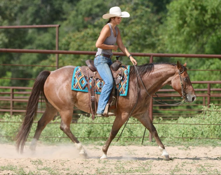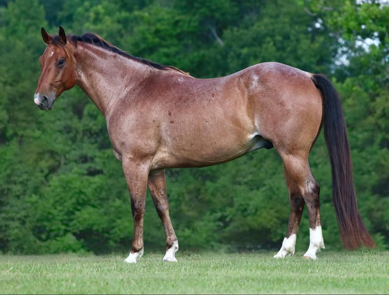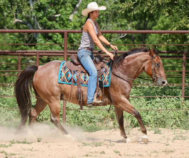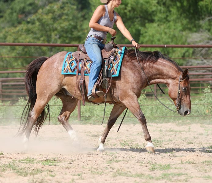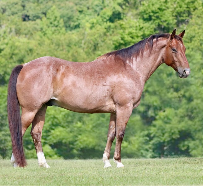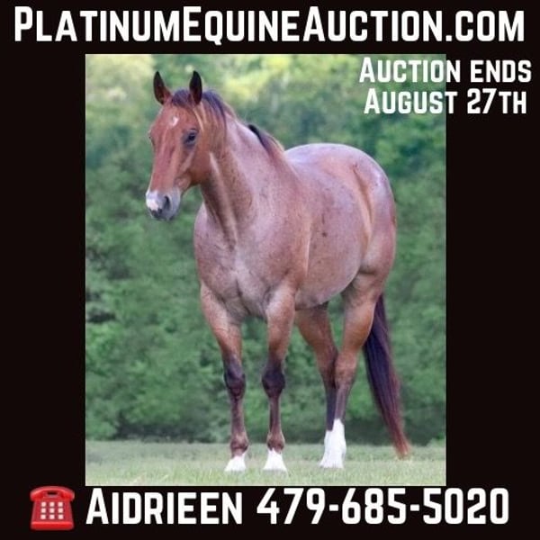 ONLINE AUCTION Place your bids at www.PlatinumEquineAuction.com Starting Bid $3500 Auction ends August 25th, 2024 Need a new saddle? Check out White Rock Saddles on our website or Facebook! Diego is a grade 8 year old 15.1 hand gelding. He is fancy broke with a neck rein and a natural low headset. This cool gelding carries himself like a reiner on a loose rein with a nice rate and a good woah. He excels in ranch riding classes, 4h, play days, rodeo events and more. Diego has been roped on and play dayed on and is no stranger to busy settings and lots of noise. He will haul out and ride the same at a new place as he does at home. Typical of a ranch/rope horse, Diego can be a little snorty on the ground, but he comes right around to cookies and scratches and will quickly be your best friend. Diego will ride through water, over bridges, swing a rope, catch a cow or donkey, run the poles and barrels, and check fences for you all day long. He is a solid and sensible work horse of a gelding that has the added bonus of coming in a flashy roan package with muscling and size to boot. He is easy on the eyes, an easy keeper, and the type of horse you can be proud to own. Located in Athens Tx. For more info contact Adrieen Staudinger 479-685-5020. ONLINE AUCTION Place your bids at www.PlatinumEquineAuction.com Starting Bid $3500 Auction ends August 25th, 2024 Need a new saddle? Check out White Rock Saddles on our website or Facebook!