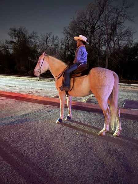 🎄𝐓𝐇𝐄 𝑯𝒐𝒍𝒊𝒅𝒂𝒚 𝐂𝐋𝐀𝐒𝐒𝐈𝐂🎄 Happening now thru MONDAY | DECEMBER 15th - Available EXCLUSIVELY on HorseBid's website! For more details and to register visit: www.Horsebid.com CONSIGNOR CONTACT: Florinia Equine 572-205-5282 LOCATION: Guthrie OK BREED: Aqha REGISTERED: Yes REGISTERED NAME: Fire n Gold COLOR: Cremello HEIGHT: 15.1 AGE: 9 GENDER: Gelding 🦄✨ PHANTOM – 9-Year-Old Cremello Gelding • The Unicorn Everyone Wants but Rarely Finds ✨🦄 If you’ve been waiting for THAT once-in-a-lifetime, heart-of-gold gelding… meet PHANTOM. This 9-year-old cremello gelding is the kind of horse people search years for. His unique golden coat, snow-white mane and tail, and icy blue eyes make him unforgettable—but it’s his mind, manners, and miles that make him a true unicorn. 🧒 Bombproof • Kid Horse Deluxe • Confidence Builder Phantom is as steady and safe as they come. He has been ridden by kids, beginners, guests, and anyone who needs a worry-free mount. He never overreacts, never rushes, never gets hot. He is a true “point-and-go” gentleman who takes care of his rider every single time. 🐎 Steady Eddy • Trail Veteran Phantom has hauled thousands of miles to overnight rides, big group trail outings, and new places. He is calm, level-headed, and sure-footed in every situation. Water, bridges, mud, wildlife, steep terrain—he simply does his job without hesitation. He truly is your Steady Eddy anywhere you take him. 🏇 Versatile – English, Western, or Just for Fun Ride him Western on the trails, throw English tack on him for lessons, pony kids around the yard, or just enjoy him as your all-around family horse. He’s the type that can do anything you ask: ride out alone, follow a group, poke around the arena, or just be the safe, dependable partner everyone wants. 🚙 Hauls Like a Dream Phantom loads and unloads like he’s been doing it his whole life—because he has. He stands tied, handles busy campgrounds with ease, and has been on countless overnight rides. He’s the horse that makes traveling easy. 🦶 Barefoot & Built Right He is barefoot with excellent feet—no shoes required. He stands quietly for the farrier and stays sound and solid on all terrain. 🤝 Perfect Manners – 24/7 Phantom is polite, quiet, and gentlemanly in every moment. Easy to catch, saddle, bridle, groom, bathe, clip—he is the same horse every day, in every situation. 🦄 Horses like Phantom don’t come along often Safe, seasoned, stunning, and unbelievably dependable—Phantom is the kind of gelding families hand down through generations. If you want a horse with the brain, looks, and heart of a unicorn… Phantom is waiting to be your once-in-a-lifetime partner.