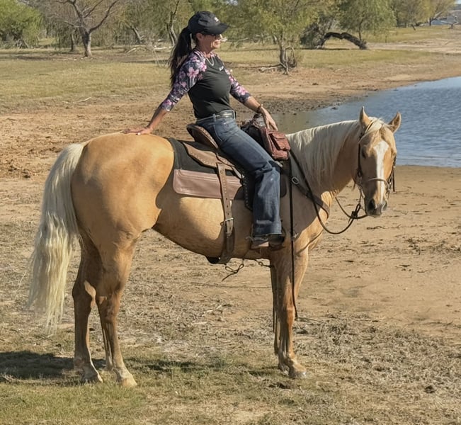 ⚜️ 𝓽𝓱𝓮 𝐇𝐨𝐫𝐬𝐞𝐦𝐚𝐧'𝐬 𝓢𝓱𝓸𝔀𝓬𝓪𝓼𝓮⚜️ Happening now thru MONDAY | DECEMBER 1st - Available EXCLUSIVELY on HorseBid's website! For more details and to register visit: www.Horsebid.com CONSIGNOR CONTACT: JP Performance Horses 817-901-6596 LOCATION: Weatherford, TX BREED: Quarter Horse REGISTERED: Yes REGISTERED NAME: DE Gold Dragon COLOR: Palomino HEIGHT: 15.2 AGE: 9 GENDER: Gelding Bonus is the ultimate family horse—an exceptional blend of beauty, personality, and dependable talent. He’s truly been there and done that, making him the kind of partner everyone hopes to find. Quiet, confident, and endlessly willing, Bonus is ready to step into his next home and give someone an incredible, trustworthy partner for years to come. Bonus is the first to meet you at the gate, love shining in his eyes, and he’s always eager for your attention. His striking looks make him standout anywhere we go. Bonus has been there done that. He thrives in any adventure or task you ask of him. Whether it’s crossing water, navigating traffic, riding English, Hunt Seat, jumping, working cows or heading out on long trail rides, Playdays, Bonus takes it all in stride. We have been jumping him, which he loves, and is up to 2ft and handling with ease. He’s calm, confident, and not spooky. Safe for any level rider. Picks up his leads super easy, has a nice spin, neck reins with one finger and has a nice stop. He could be shown in AQHA ranch trail, ranch versatility, jumping, Hunt Seat, 4H shows, the sky is the limit with this beautiful gelding. He loads and unloads easily, stands quietly for the farrier, and even enjoys bath time! Bonus is extremely versatile whether your riding western or English, he handles everything we have thrown at him like an old veteran. He would make an excellent therapy horse with his sweet nature. Whether you ride him every day or leave him off for a few weeks, he always picks up right where you left off. Absolutely NOTHING bothers him. The list is endless as to what he would do! This gelding is a true family-friendly horse—gentle, laid-back, and absolutely full of heart. His soft expression and kind demeanor say it all: he’s just like a big puppy dog. • Age: 9 years old • Coggins: Current • Teeth floated: November 2025 • Temperament: Exceptionally sweet and easygoing • 15.2 hands tall If you’re looking for that once-in-a-lifetime horse that’s safe, reliable, and loaded with personality—Bonus is it. 📞 For more information or to schedule a visit or FaceTime call, contact Jackie with JP Performance Horses at (817) 901-6596. Shipping can be arranged anywhere.