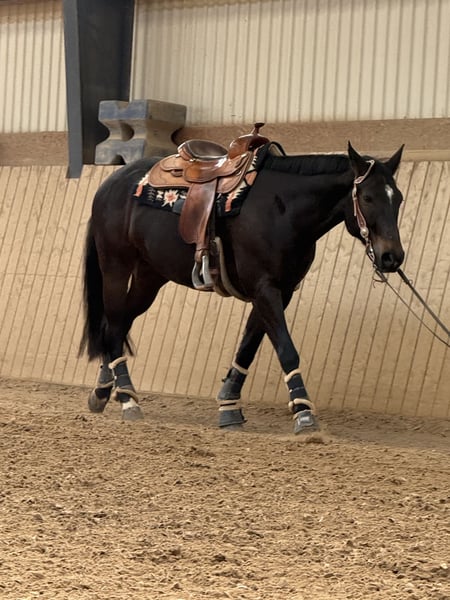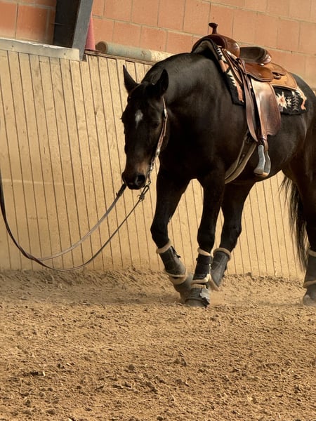 For sale is a brown Quarter Horse gelding, born March 2016, approximately 15.8–16.0 hh. Due to numerous inquiries – the price is absolutely negotiable! He is regularly vaccinated and dewormed and has been ridden mainly for leisure. He has a lot of potential for more advanced work. His especially notable feature is his very slow, super comfortable jog. In the terrain, he prefers to lead, is motivated and reliable. He can be a bit excitable in new situations or during first rides, but has never bolted. Most rides have been in pairs, but he is also experienced riding alone. Pedigree: Sire: Refried Dreams Dam: Baby Snapper Tamara He is familiar with herd life, paddock boxes, and stables with daily turnout. He is herd-safe, very social, and avoids conflicts. He has been shod four times and currently is barefoot, which works well. In handling, he is very well-behaved, cautious, sensitive, intelligent, and eager to learn, but also highly sensitive. In stressful situations, he needs time and calm to adjust to new things. Therefore, he is not suitable for beginners – riding experience and a good feel for sensitive horses are essential. He has never bucked or bolted under saddle. He is only sold into the best hands, preferably as a gelding for a man. Light dust sensitivity; during heavy dust exposure, he may cough occasionally – this has not occurred in recent months. Trial rides possible (€50), only with serious interest, time, and patience. Location: Near Paderborn Further information gladly via message. Only to be placed in experienced and loving hands. Videos of riding are not available at the moment. Complete tack available at additional cost!