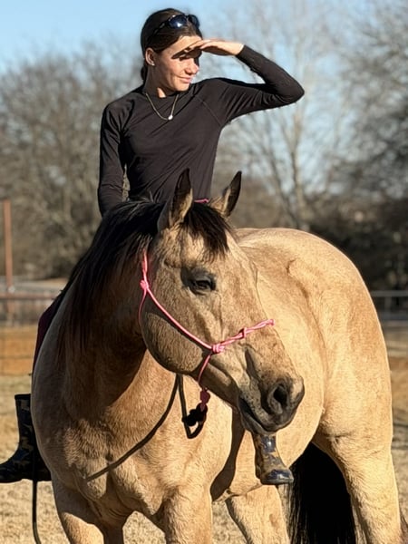 💎 𝐓𝐇𝐄 𝓓𝓲𝓪𝓶𝓸𝓷𝓭 𝐒𝐇𝐎𝐖𝐂𝐀𝐒𝐄 💎 Happening now thru MONDAY | FEBRUARY 23rd - Available EXCLUSIVELY on HorseBid's website! For more details and to register visit: www.Horsebid.com CONSIGNOR CONTACT: Combs Quarter Horses 727-741-0559 LOCATION: Cleburne, TX BREED: AQHA REGISTERED: Yes REGISTERED NAME: DunIt Like Freckles COLOR: Buckskin HEIGHT: 15.3 AGE: 10 GENDER: Gelding Talk about the whole package! Clifford is one that will truly check all the boxes! DunIt Like Freckles (Dun It Like Lena x Chickasa Freckles) Clifford is an amazing 10yr old 15.3h buckskin gelding! Clifford is by Dun It Like Lena who is by the one and only NRHA hall of fame Hollywood Dun It! Out of Chickasa Freckles by the NCHA money earning stallion Commander Freckles! From the AQHA to the local shows to the trail rides.. this guy will keep you in the spotlight! DISPOSITION: Clifford is the definition of a loving, easy going big gelding. He loves bath time, he loves belly scratches and he will smile for cookies! Clifford has a great in your pocket personality thats easy to love! Clifford stands like a statue for grooming, washing, saddling, mounting block and he’s extremely easy to bridle! Clifford is well suited for all ages and sizes. From the lesson barns, the show barns and the trail riding homes.. I think everyone is sure to enjoy this big beautiful boy! WESTERN EXPERIENCE: Clifford was professionally started and trained as a Reiner. He’s got all the fancy bells and whistles without being overly sensitive to riders cues. He’s more like a slow motion Reiner that excels in the ranch riding/pleasure. Clifford has phenomenal transitions with nice, easy, smooth consistent gaits. He’s got a very nice easy jog and a very comfortable lope. Clifford will ride off of leg or seat cues for the more advanced riders or you can just neck rein him around for those learning the ropes. When you’re ready to slow down just say the word whoa and Clifford will come to a safe, easy stop. Clifford really stands out in the ranch classes! If you just want to trail ride you’ll really enjoy every time you climb onboard! Clifford ties quietly to the side of the trailer for convenient tacking up. No spook or silly business. Clifford doesn’t mind the wildlife, cows, traffic, dogs or any other things you see out on the trails. He loves the water, he goes up, over, under and through anything you point him at! He will ride out along or in a group. He will also ride front, back or middle of the pack. You can also lope away leaving him behind or run up behind him.. nothing bothers him! ENGLISH EXPERIENCE: Clifford is just starting his English riding career and he not only loves it.. he’s amazing under English tack! He will absolutely stand out in the HUS classes! He’s amazing! Clifford also goes right to the jumps! He’s brave, easy and honest! Clifford has a bright future in the Hunter ring! UPKEEP: Clifford is currently eating free choice alfalfa and 1 1/2 scoops of basic pellets twice a day. No supplements or maintenance required to keep this guy sound! We do have shoes on Clifford all the way around as a personal preference. Would be happy to pull back shoes before hauling. TURNOUT: Clifford is quiet in a group or single turnout. Not aggressive and doesn’t go looking for a fight. He’s very playful and really likes to put on a show for the camera! Just a happy go lucky guy! GROUND MANNERS: Clifford is a perfect gentleman on the ground. He’s very aware of personal space and little toes! He’s quiet and gentle enough for even the little ones to tote around. Loads and unloads easily. Stands single tied and cross-tied. BAD HABITS/ VICES: Clifford has no bad habits or vices. No bite, kick, rear, buck or bolt. TACK: Clifford will ride bareback, English or western. He will ride in a halter and lead rope, a snaffle, a short shank snaffle or just about anything you want to try. He’s really not picky. BOARDING: Temporary board is available to arrange pick up. Absolutely no rush. Coggins and health certificate will be provided and in hand for hauler. Please feel free to contact me for any further information at 727-741-0559. This is a Florida number that I’ve had for years.v