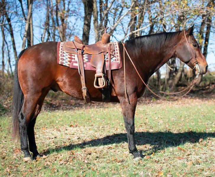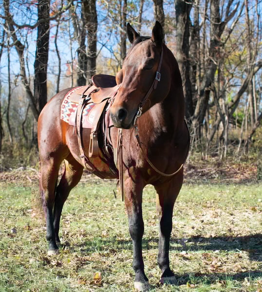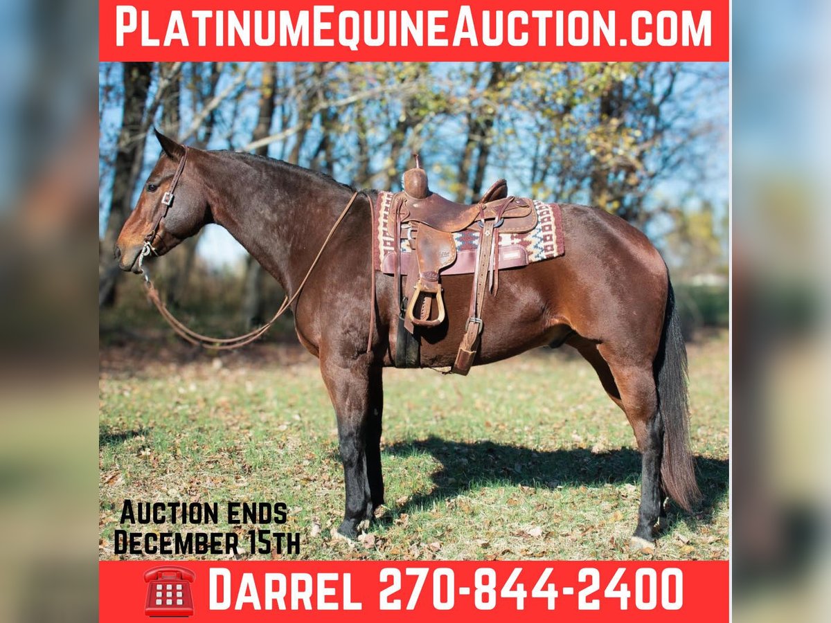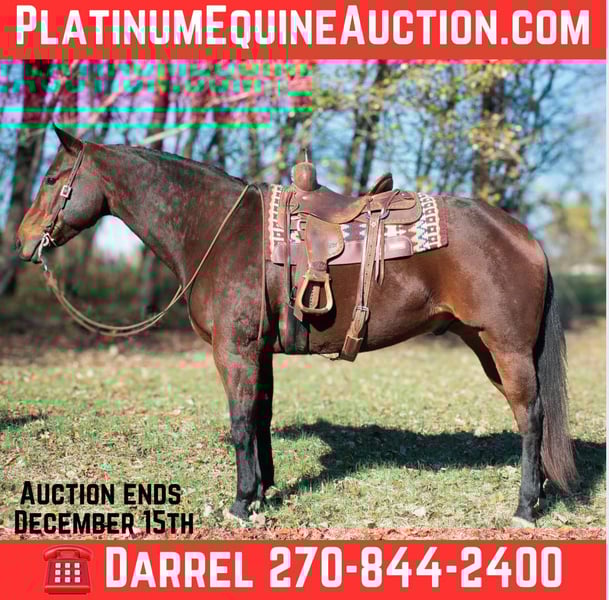 ONLINE AUCTION Place your bids at www.PlatinumEquineAuction.com Starting Bid $3500 Auction ends December 15th, 2024 Need a new saddle? Check out White Rock Saddles on our website or Facebook! AQHA 2016 Frenchman Diamondblu Bay Gelding. Asher stands at 16 hands tall and is built like a Mac truck weighing about 1350 pounds. He is a nice thick, sturdy built with nice legs and feet. He’s currently shod all the way around. Asher has been on overnight trail rides, week long trail rides, packed saddle bags, and tied to the picket line overnight. Asher will trail ride alone, in small groups, as well as large groups. He is use to traffic, ATV’s, heavy machinery and dogs. He will travel the trails with ease, go through the creeks, over bridges and up and down the big cliffs. Asher will neck rein or you can ride him 2 handed, he has a nice trot and a really nice slow lope. Stops when asked and backs up. Asher has pushed cattle around in the fields and been roped off of a little. On the ground Asher has great ground manners and will be patient and respectful everyday. He stands tied quietly, stands for farrier, to groom, tack up and baths. He jumps right in the trailer and unloads easily. He will stand at a mounting block for you to get on and off and doesn’t move until asked. Asher is a very personable horse and is very enjoyable to have around the barn. Currently Asher is turned out on a large pasture with many other horses and gets along great with them all, he has also been stalled with zero issues. Easy to catch, you ask? Yes he will be the first one to you and drops his head for the halter. He loves attention and is always wanting to please. Asher has no vices, he’s sane, honest and sound. We invite anyone and everyone to come meet and ride Asher at our barn in Henderson, Kentucky. We are happy to assist with transportation arrangements. Contact Darrel Townsend 270-844-2400 for any and all questions. ONLINE AUCTION Place your bids at www.PlatinumEquineAuction.com Starting Bid $3500 Auction ends December 15th, 2024 Need a new saddle? Check out White Rock Saddles on our website or Facebook!