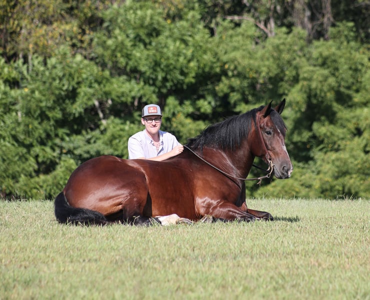 ONLINE AUCTION Place your bids at www.PlatinumEquineAuction.com Starting Bid $3500 Auction ends December 7th, 2025 Need a new saddle? Check out White Rock Saddles on our website or Facebook Meet the Mighty Thor! A beautiful bay draftcross that stands around 16.2hh, that will weigh around 1400lbs and he is a 9 years old. Thor has been through the natural horsemanship program and knows some tricks such as to lay down on command. He has been ridden down the highways and he is traffic safe. He is broke to work under harness in all types of farm machinery. Thor is great on trails and he will cross creeks, ditches, logs and navigate rough rocky areas. He has a smooth jog, lopes nice circles and a good stop! He neckreins around and backs with ease. He has been exposed to all kinds of wildlife such as deer or turkey or other animals like cows or dogs and will go anywhere that he is asked too. He has been ridden many miles in the mountains of Eastern Kentucky and encountered every obstacle possible on the trail. He will go up or down even the steepest slopes, across deep creeks, over downed trees, and over all types of rough terrain while still being sure footed. Thor is not cinchy, cold backed, does not crib or weave. If you are looking for big, beautiful and safe… Thor is your guy!!! Feel free to call Eric 606-308-2461 with any questions. ONLINE AUCTION Place your bids at www.PlatinumEquineAuction.com Starting Bid $3500 Auction ends December 7th, 2025 Need a new saddle? Check out White Rock Saddles on our website or Facebook
