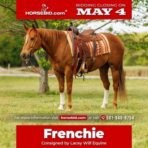▪️▫️◾️𝐭𝐡𝐞 𝑴𝒂𝒚 𝐒𝐞𝐥𝐞𝐜𝐭◾️▫️▪️ Happening now thru MONDAY | MAY 4th - Available EXCLUSIVELY on HorseBid's website! For more details and to register visit: www.Horsebid.com CONSIGNOR CONTACT: Lacey Wilf Equine 501-940-8704 LOCATION: Quitman, AR BREED: Quarter Horse REGISTERED: Yes REGISTERED NAME: Frenchmans Magic Guy COLOR: Sorrel HEIGHT: 14.1 AGE: 10 GENDER: Gelding Frenchmans Magic Guy, or Frenchie around the barn, is a 2016 model gelding standing 14.1 hands with the kind of pedigree and versatility that never goes out of style. By an own son of the legendary Frenchmans Guy, he carries the influence of one of the most recognized and proven lines in the industry, known for producing horses with speed, grit, and versatility that translates across disciplines. Frenchie is the kind of horse that fits into real life without needing to be managed or figured out. He has spent his time where it counts, riding the trails, working around the ranch, and handling the kind of days that build a horse right. He is confident outside, steady through new country, and the type you can point in any direction and enjoy the ride. Around cattle, he is useful and willing, understanding his job and stepping up without hesitation. In the arena, Frenchie offers a well-rounded and practical skillset. He knows the barrel pattern and is suitable for youth riders, bringing a level head and consistency that makes him dependable. He has also been tracking the dummy with focus and feel, showing all the pieces to excel in the calf roping or develop into a solid heel horse. He is athletic without being complicated, responsive without being too much, and always stays on your side. What truly sets Frenchie apart is who he is every single day. He is the same horse each time you take him out, steady, honest, and easy to be around. He meets you with a kind eye, lowers his head to be petted, haltered, or bridled, and genuinely enjoys attention. There is a quiet reliability to him that you feel immediately. Conformationally, he is correct and straight in every way, built to last and move with purpose. On the ground, he is exactly how one should be, with exceptional manners and an easy, respectful way about him. He is simple to catch, groom, tack, load, haul, shoe, and bathe, fitting seamlessly into any program. Frenchie is not a horse that needs explaining. He is the one you reach for without hesitation, the kind that shows up the same every time and makes every ride feel easy.
