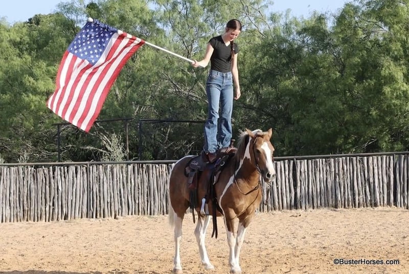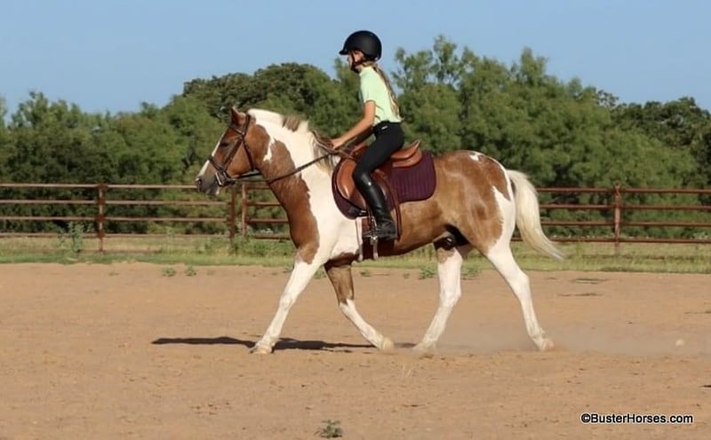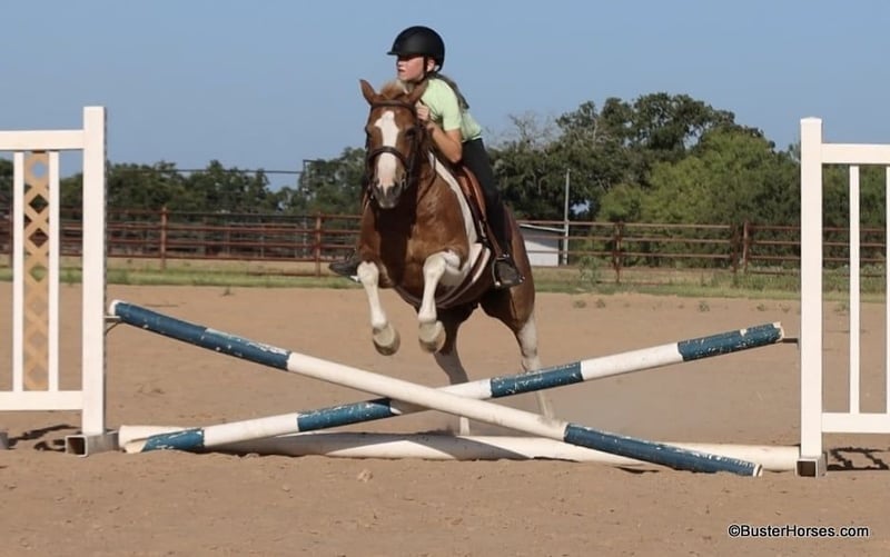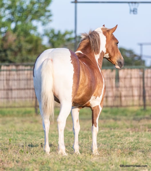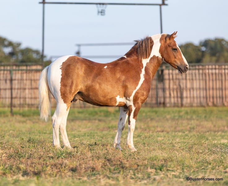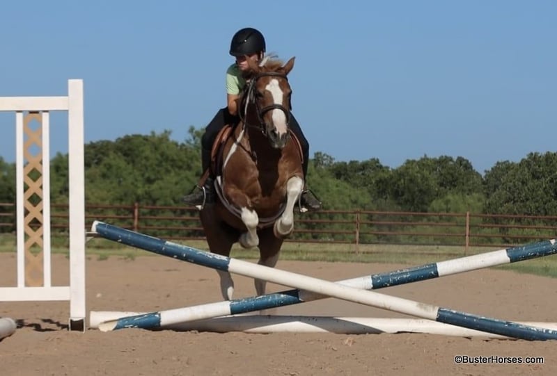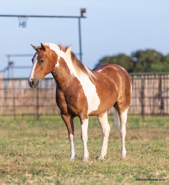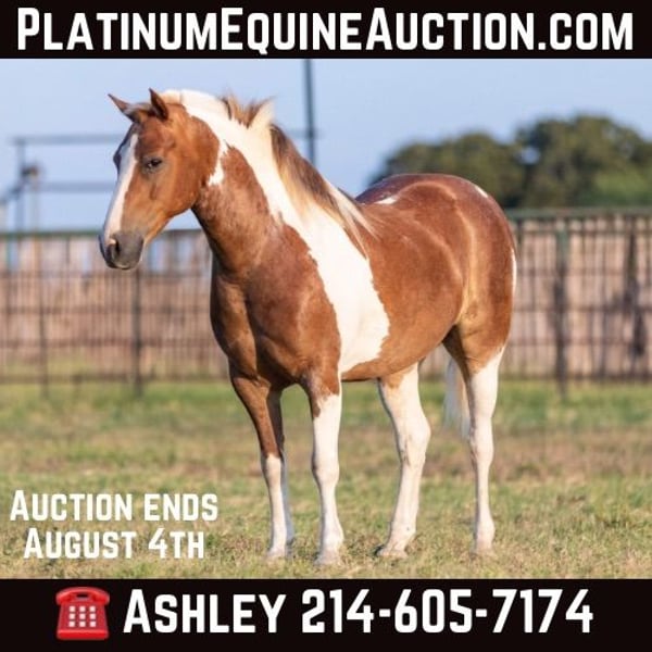 ONLINE AUCTION Place your bids at www.PlatinumEquineAuction.com Starting Bid $3500 Auction ends August 4th, 2024 Need a new saddle? Check out White Rock Saddles on our website or Facebook! “Frank the Tank” – 12.2H, 9 year old grade sorrel paint haflinger cross gelding Frank the Tank is a super fun gelding that is the perfect height. He is so easy to get on and off of, at only 12.2 hands – but he is as stout as they make them and has tons of foot and bone and can easily carry an adult rider. Watch his videos – he easily fills out the leg of our adult riders, but he is an incredibly easy to handle and convenient shorter height. If you are looking for a fun height for your kids, that they won’t outgrow overnight, then this is your guy – or if you are looking for a smaller horse for an adult rider that is easy to saddle and easy to get on and off of. Frank has been a million miles out on the trails and loves to go to town and is very comfortable around traffic and commotion. He rides out just as well alone as he does in a group. Frank was driven by a previous owner when he was younger, but his past family just used him for pleasure riding. He rides both English and western and has been to handful of local events. He would be a great mount for pony club and entry level hunter/jumper/dressage shows, he has been started over fences and loves to jump! He could also be fun for the low level playdays. By far his largest attribute is his fun, sweet, friendly disposition, big personality, and willingness to try anything that you put in front of him! Please check back for more videos of Frank to be posted this coming week at BusterHorses.com Frank was just trimmed last week and his teeth were also done by an equine dentist last week. At the same time he had his sheath cleaned, his ears preemptively treated for ticks, and he was also power packed wormed. Frank is also good to shoe, but he has great feet and goes really well barefoot – if his new owner prefers him to be shod, we can have him shod prior to him heading to his new home. He will arrive at his new home up-to-date and ready to go to work! To see additional videos, go to our website: BusterHorses dot com or our Facebook page Buster Horses Please call anytime for more information at 214-605-7174 Frank is located in Weatherford, TX – one hour from Dallas / Fort Worth International Airport. He is an easy day trip or fun overnight trip to come try out, from anywhere! We are experienced, knowledgeable sellers, and we can help with quickly arranging affordable shipping to any buyer’s location – we have experience shipping worldwide – including regularly to Hawaii, Canada, Mexico, Europe, and South Africa. ONLINE AUCTION Place your bids at www.PlatinumEquineAuction.com Starting Bid $3500 Auction ends August 4th, 2024 Need a new saddle? Check out White Rock Saddles on our website or Facebook!