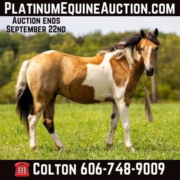 ONLINE AUCTION Place your bids at www.PlatinumEquineAuction.com Starting Bid $3500 Auction ends September 22nd, 2024 Need a new saddle? Check out White Rock Saddles on our website or Facebook! Butterscotch is every bit as sweet as his name! If you’re looking for safe and flashy, he’s got it all! The ultimate package, Butterscotch stands at 12.3 hands tall and rides just like the big horses do. He is broke, broke, broke! He’s the pony that raises children from the time they start riding until they become young adults. At 9 years old, he has proven himself time and time again, and still has everything left to give. He is honorable, honest and consistent. Butterscotch has been ridden by beginner children on the trails and is proud to do so, watching his footwork every step of the way. He crosses any obstacle with confidence, you can rest assured your children have an autopilot ride. He will ride in the back, middle, front or even alone. Turn him loose with your young riders and see their confidence soar! If play days and fun shows are your style, he has the means to excel in just about any class. He has the buttons and handle you are looking for, yet he is 100% forgiving and tolerant of mistakes. He is a fun, well rounded guy in every aspect. He will neck rein, back up, and catch both leads loping a circle. Not only is he broke to ride, he is also broke to drive! He has been used to pull a small carriage! He is also broke for some small farm implements such as a mower. He will be traffic safe and sound in every way. Butterscotch is every dream come true, and he is waiting to fulfill those dreams for the next kiddo! Contact PR Quality Horses Colton 606-748-9009 Haley 859-475-2621 Located in Ewing, KY. ONLINE AUCTION Place your bids at www.PlatinumEquineAuction.com Starting Bid $3500 Auction ends September 22nd, 2024 Need a new saddle? Check out White Rock Saddles on our website or Facebook!