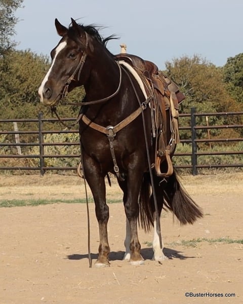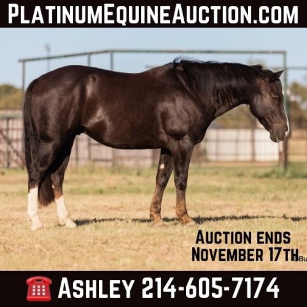 ONLINE AUCTION Place your bids at www.PlatinumEquineAuction.com Starting Bid $3500 Auction ends November 17th, 2024 Need a new saddle? Check out White Rock Saddles on our website or Facebook! “Beans” – 14.2H, 9 year old chestnut quarter horse gelding. We get calls every week, for “just-a-horse”, you know, just to trail ride, just to live at the house, just for guests, just for a once a year event or group trail ride. Well, if you have been hunting that “just-a-horse”, this is your guy. Beans is nothing fancy at all – just a horse – but a good one and he’s sure pretty too! He is sweet natured, friendly, and docile – he would love to be someone’s pet and just hang out. His good looks sure don’t hurt him! He has a unique, fancy dark chestnut/brown color, and just enough chrome to stand out, but still looks classic. He has huge bone and is stout as they make one – the rider in this video is over 6′ and ALL LEG – he should be able to carry just about any sized rider, but he is still a nice comfy easy to saddle and easy to get on and off of size! He has been on a ranch most of his life and has been used to check lots of cattle and fence lines. He has been roped off of a little too, but he’s not very fast. He rides on a big loose draping rein and he is always eager to stop on whoa, has a super comfy little shuffle jog to him, and a nice lope. He is pleasant to ride out, and enjoys going places and pays attention where he puts his feet. He rides like he’s been out a time or two before! Just a good ol’ boy that is no nonsense, chill, and happy to be here. He loves getting in the water and falls asleep for a bath! He lives out in a big pen with several others and is a very easy keeper, he’s on a light ration and still looks like a million bucks! He has front shoes on and was just shod last week, and had his teeth done by an equine dentist last month. Watch his video and to see additional videos, go to our website: BusterHorses.com or our Facebook page Buster Horses Please call anytime for more information at 214-605-7174 Beans is located in Weatherford, TX – one hour from Dallas / Fort Worth International Airport. He is an easy day trip or fun overnight trip to come try out, from anywhere! We are experienced, knowledgeable sellers, and we can help with quickly arranging affordable shipping to any buyer’s location – we have experience shipping worldwide – including regularly to Hawaii, Canada, Mexico, Europe, and South Africa. ONLINE AUCTION Place your bids at www.PlatinumEquineAuction.com Starting Bid $3500 Auction ends November 17th, 2024 Need a new saddle? Check out White Rock Saddles on our website or Facebook!