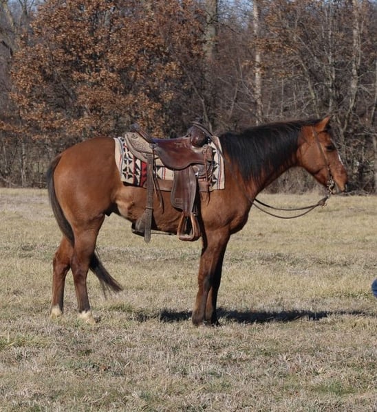 """AVAILABLE ON ONLINE HORSE AUCTION AT www.MagicHorseAuction.com BIDDING OPEN NOW thru TUESDAY | FEBRUARY 3RD! BUY IT NOW AVAILABLE! *Final price will be determined on auction site* CONSIGNOR CONTACT INFO: Mitch Titus #217-549-3803 LOCATION: Charleston, IL Freddy is an 11 year old AQHA dun gelding standing 14.2 hands that’s as solid and honest as they come. He is kid safe and grandma ridden, gentle enough for anyone to get along with and broke the right way. Freddy has been trail ridden extensively, is traffic safe and pasture ridden, and doesn’t get bothered by cars, trucks, or everyday noise. He’s been ridden from the central U.S. clear out into the western states and has seen all kinds of country, terrain, and situations, so new places don’t phase him. He’s easy to catch, stands tied, saddles and bridles quiet, and rides the same every time you swing a leg over him. This is the kind of gelding you can take out alone or with a group and just enjoy the ride. If you’re looking for a dependable, no-nonsense horse that takes care of his rider and won’t surprise you, Freddy fits the bill. Located in Charleston, Illinois.
