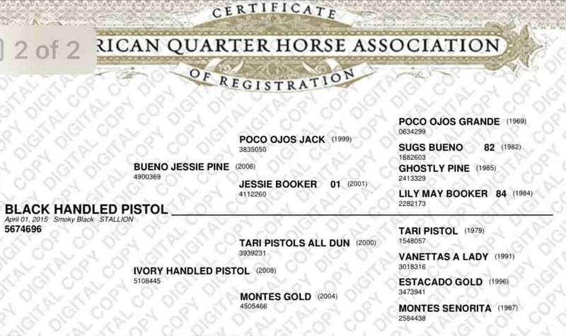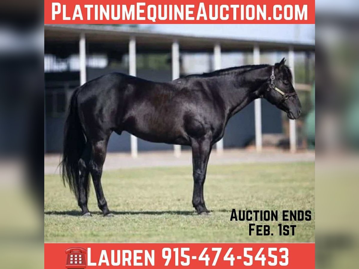 ONLINE AUCTION Place your bids at www.PlatinumEquineAuction.com Starting Bid $3500 Auction ends February 1st, 2026 Need a new saddle? Check out White Rock Saddles on our website or Facebook Black Handled Pistol registered AQHA gelding. He stands 14’2 he’s a true all around family horse! He has been with the same family his entire life. He’s been trail rode and ranched on in west Texas. He’s a very reliable using horse that will get a cowboys job done or be a family horse and cruise down the road for an evening trail ride. He’s a true quarter horse type gelding he’s wide,stocky, big hip with a little head. He’s got the coolest jet black color with not a white hair on him. He has a great personality, he’s super gentle and wants to be your friend . We’ve used him extensively on the ranch from roping outside, rounding cows up or pushing steers up at the roping practices. He’s been roped on in the arena, he’s started on the heel side he’s had a lot of work done on the smarty. He knows his leads, he will lope big pretty circles. He’s been around the flags, tarps, traffic, he’s absolutely safe for any level rider will be safe everyday of the week and 100% reliable. He is easy to shoe, saddle , bathe , load and haul with no issues. He will be straight legged no bumps or blemishes and 100% sound. If you are looking for your next family horse pistol is your guy don’t miss him. Contact Lauren Lara 9154745453 Located in El Paso TX. ONLINE AUCTION Place your bids at www.PlatinumEquineAuction.com Starting Bid $3500 Auction ends February 1st, 2026 Need a new saddle? Check out White Rock Saddles on our website or Facebook