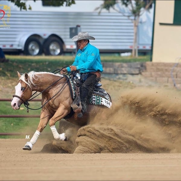 𝑳𝒚𝒏𝒄𝒉 𝐏𝐄𝐑𝐅𝐎𝐑𝐌𝐀𝐍𝐂𝐄 🔹𝑼𝑵𝑰𝑪𝑶𝑹𝑵 𝐂𝐋𝐀𝐒𝐒𝐈𝐂🔹 Happening now thru SATURDAY | MARCH 28th - Available EXCLUSIVELY on HorseBid's website! For more details and to register visit: www.Horsebid.com CONSIGNOR CONTACT: Lynch Performance, LLC 605-777-5883 LOCATION: Canistota, SD BREED: AQHA REGISTERED: Yes REGISTERED NAME: GUNS ON LINE COLOR: Palomino HEIGHT: 14.2 AGE: 11 GENDER: Gelding We are not sure there are words to describe how special this gelding is, but we will give it a shot…”Boss” as we affectionately call him is by far the best horse we have offered in a very long time. He is one that will leave a mark on your heart forever. From his affectionate personality, beauty, talent, and quietness he is quite literally the perfect gelding. This is the kind of horse we try to find every single day. He is the kind that makes it unfair to every other horse in the barn to be compared to. He is in a league of his own. Boss has $16,000 in NRHA earnings and can be shown by anyone! Open, Non-Pro, Novice, and Youth will and have had success with him. Our ten-year-old niece showed him for her very first time in a youth class at an NRHA show and not only did they put on a heck of a show, but they WON. One cannot train this kind of mind into a horse. Boss craves pleasuring his rider and will take care of anyone aboard. This extraordinary gelding’s ability to hit the ground hard and smooth in his stops is incomparable. It’s like having an emergency brake that you don’t even have to pull on. His rundowns are smooth and controlled- never outrunning his rider and will stop every single time. Boss can spin slow and low-headed and then hit the gas button when asked. By far the EASIEST lead changer ever!!! Takes the absolute lightest cue to change leads- he is always ready! Seriously though Bri will ride this horse in tennis shoes and bridle-less and do a full reining pattern. Plain and simple he is EASY. Boss is a boss. His fast to slow transition is flawless, as he is always looking to slow down for you and his rollbacks are SO fun! Boss is the one to teach the newbies and lead you to the winner circle! We love watching Boss move, even just when he is out playing. He has an elegant way of moving with a lot of grace in his strides. Bossman is a pleasure outside of the arena as he will graciously trail ride alone or in a group. This gelding is the most spook-proof horse we have ever had. Extremely large and loud machinery going by him is of no concern. When it comes to crazy dogs, silage tarps, and our obstacle course, he won’t even take a second look. He has a nice, easy going walk and will stop and hang out for as long as you want. Boss crosses valleys, creeks, logs, and anything else he comes into contact with. He loves going for a nice swim in the river or pond as well! This is the horse you put your town friends on. This is the horse you have the kids warm up for you. This is the horse that you leave off for a month and then load him up to go to a last minute show. This is the horse that is irreplaceable. If you cannot tell by his photos, this guy is STUNNING. With his big white face, blue eye, four white socks, and perfect palomino color he is to die for. He stands at 14.2hh and is definitely a chunker. Boss is an easy keeper and very sound. His charismatic personality makes him a joy to be around. He loves to smile for a treat and loves to be in your pocket getting all of the love. Boss is easy to catch outside and gets along extremely well with other horses. We have had him outside and in a stall. Currently has a full set of shoes on and is great for the farrier. Boss is a good boy about being clipped and bathed- of course because it’s more attention for him. This is the kind of horse we strive to have. This is the horse we get calls for every day. This is the kind of horse that is the epitome of UNICORN. A horse like Boss is not on every corner and we are very proud to be a part of his life and help him find his forever home. An amazing home with lots of treats is mandatory for this guy.
