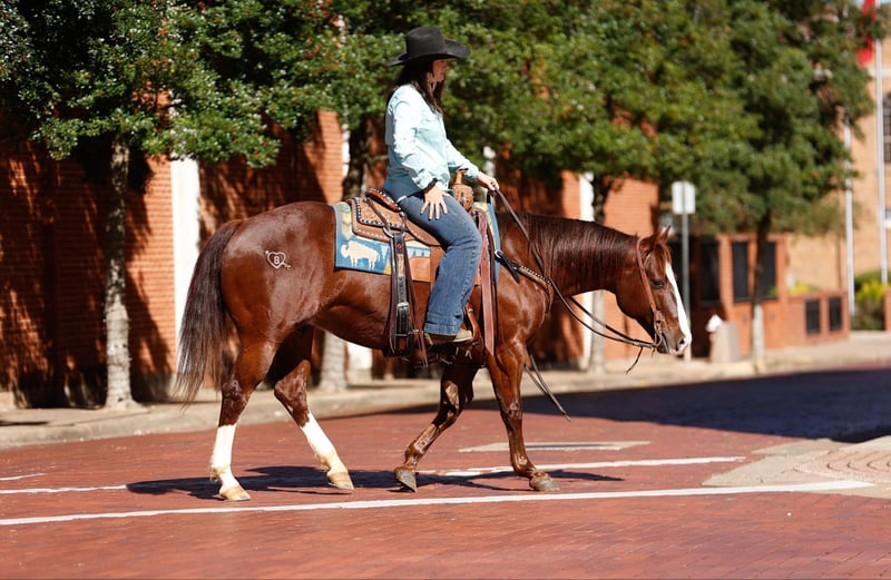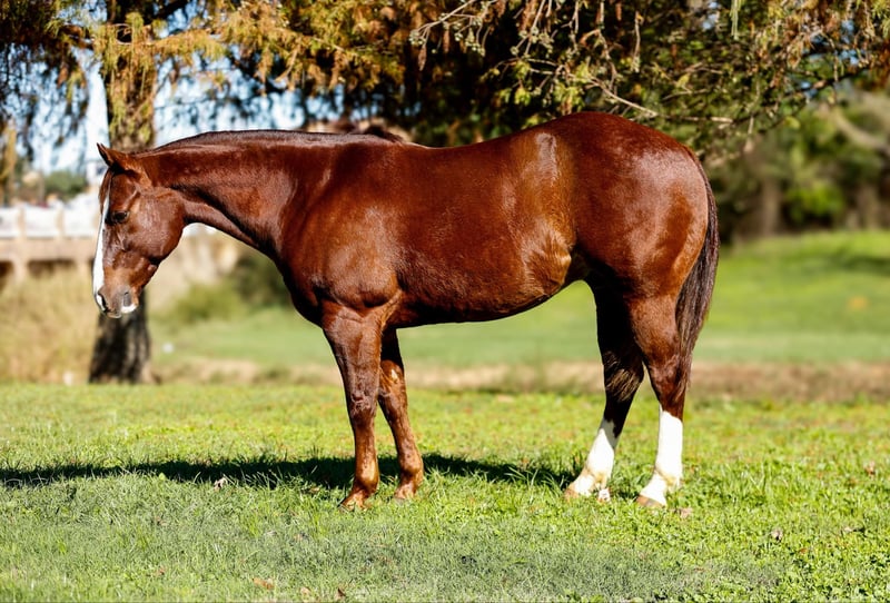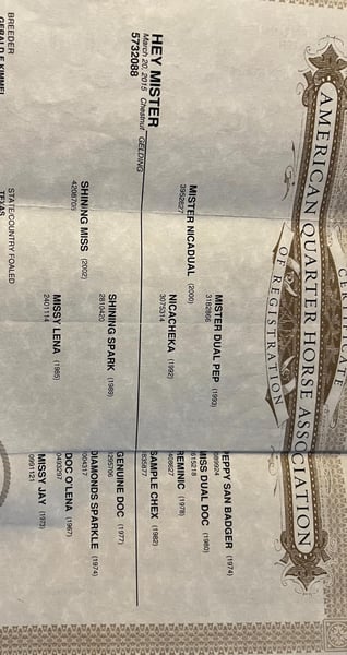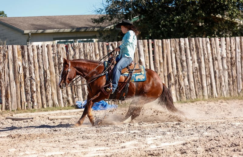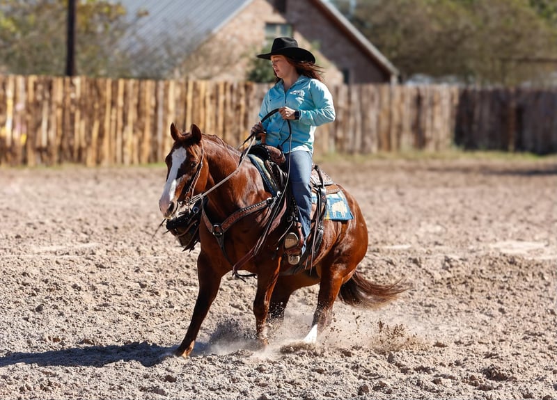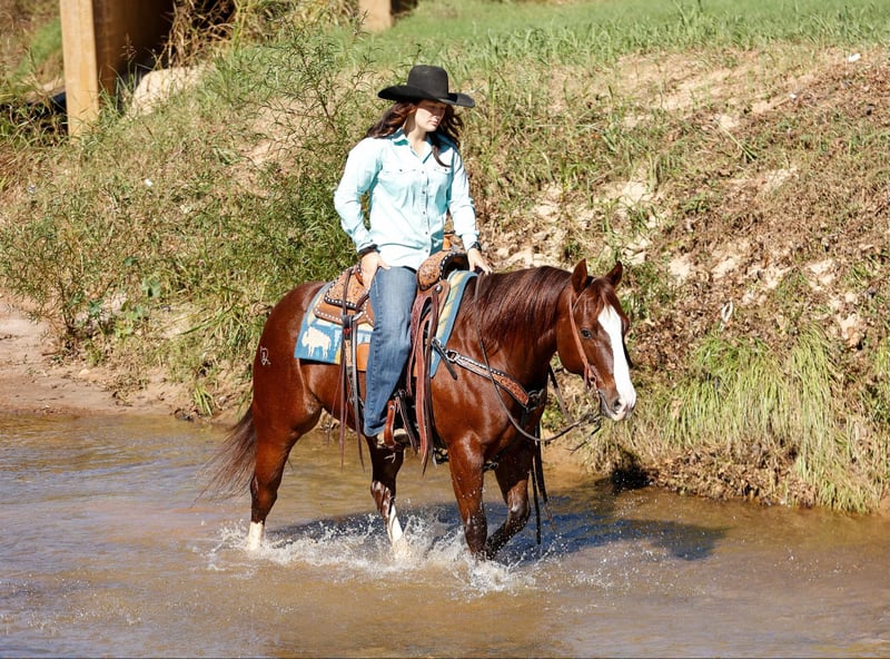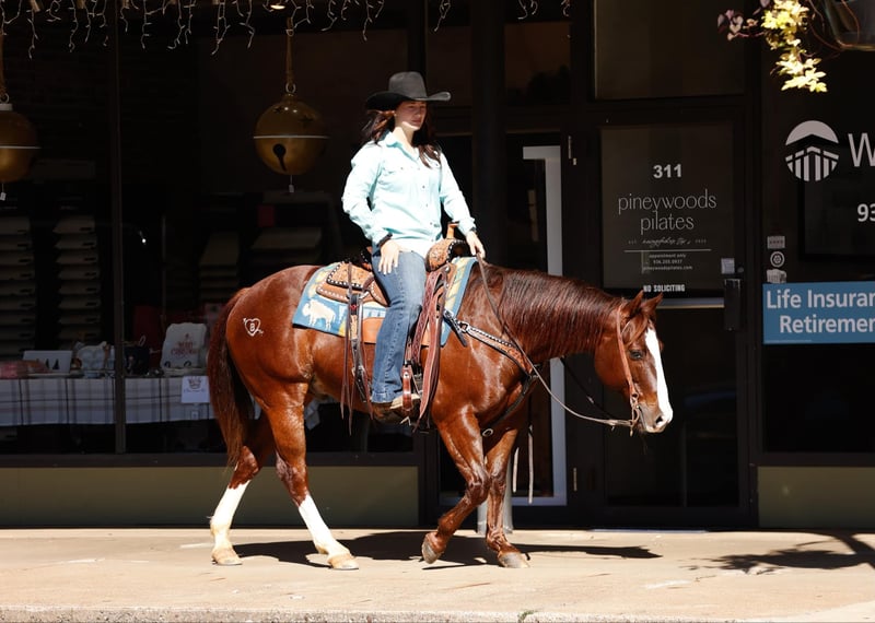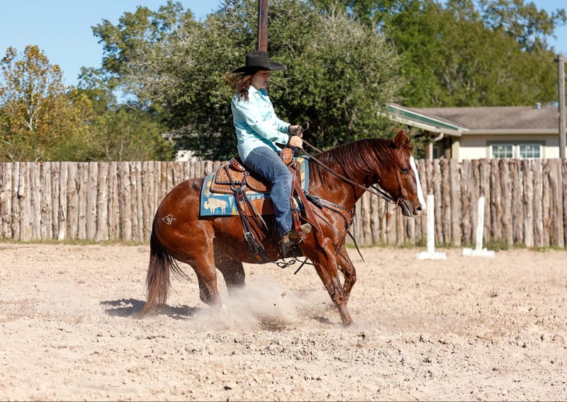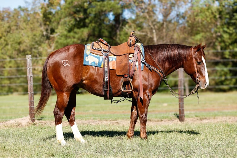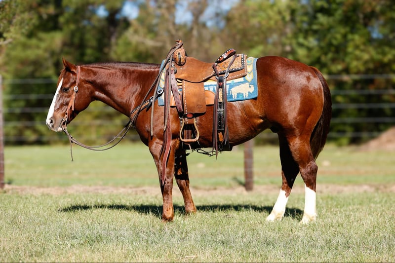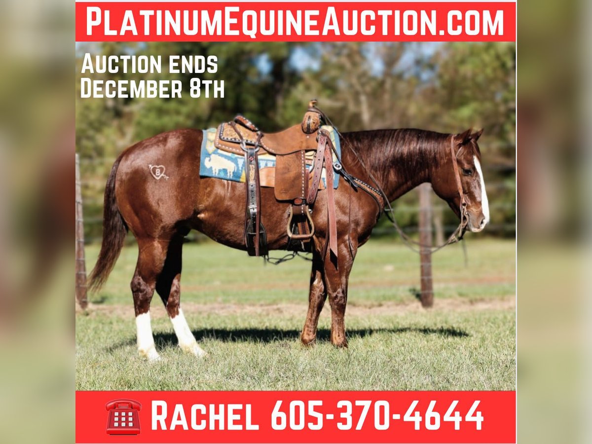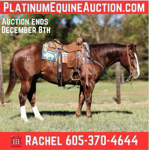 ONLINE AUCTION Place your bids at www.PlatinumEquineAuction.com Starting Bid $3500 Auction ends December 8th, 2024 Need a new saddle? Check out White Rock Saddles on our website or Facebook! Hey Mister is a 9 year old AQHA chestnut gelding, with an awesome pedigree with Peppy San Badger and Shining Spark. He stands 14.3 hands and is stout! Mister has a little of everything and is a true all around gelding! He is finished in the reining and has been shown in the youth and amateur shows, he knows all the maneuvers and is super easy to ride, he is a big stop, nice spins and has great flying lead changes! Mister is also finished in the breakaway, he is good in the box and has a big stop. He has been used for all aspects of ranch work outside, he has been used to doctor outside and has also been used to gather and sort in the pens! Mister has been trail rode all over, he goes and does anything that is asked of him, he crosses the creeks, bridges and logs without hesitation. Mister has a super sweet in your pocket personality and absolutely loves people. He is super gentle and quiet to ride and be around and would be suited for any age or level of rider! If you are looking for a gentle and safe gelding that you can do anything on be sure to check him out! Mister is located in Rusk TX, with nationwide shipping available! Call or text TR Livestock Rachel 605-370-4644 for more info! ONLINE AUCTION Place your bids at www.PlatinumEquineAuction.com Starting Bid $3500 Auction ends December 8th, 2024 Need a new saddle? Check out White Rock Saddles on our website or Facebook!