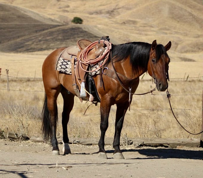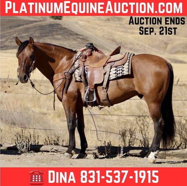 ONLINE AUCTION Place your bids at www.PlatinumEquineAuction.com Starting Bid $3500 Auction ends September 21st, 2025 Need a new saddle? Check out White Rock Saddles on our website or Facebook They say everything’s better with bacon, and this one proves it. Bacon is an 10 year-old, 14.3-hand dun gelding with tiger stripes on his legs, a coat full of dun factor, and the kind of presence that makes folks look twice. Bacon isn’t just a pretty plate — he’s steady, broke, and built to go anywhere. He’s crossed rocky trails, splashed through creeks, eased over bridges and logs, and marched right through tarps and pool noodles like he’s seen it all before. He carries a forward, ground-covering walk and an easy trot that eats up country without eating up your patience. In the arena, he’s as smooth as butter on a hot skillet. Picks up both leads, stops soft, backs light, and makes every transition feel easy. He’s the kind you hop on when you just want a relaxing, uncomplicated ride — but he still feels sharp enough to keep things fun. Outside, Bacon has gathered cattle and handled ranch chores with the same quiet, reliable style. He’s not a hothead, not pushy — just a worker with good manners and a good mind. On the ground, he’s the gentleman of the barn. He ties, bathes, hauls, stands for the farrier, and greets you at the gate. Whether stalled or pastured, he fits right in. Stout, balanced, and handy at 14.3 hands, Bacon is as versatile as he is flashy. Western, English, trail, or ranch work — this gelding is ready to season your life with the right kind of flavor. 📍 Longhorn Ranch – Paicines, CA 📞 Dina – 831-537-1915 ONLINE AUCTION Place your bids at www.PlatinumEquineAuction.com Starting Bid $3500 Auction ends September 21st, 2025 Need a new saddle? Check out White Rock Saddles on our website or Facebook
