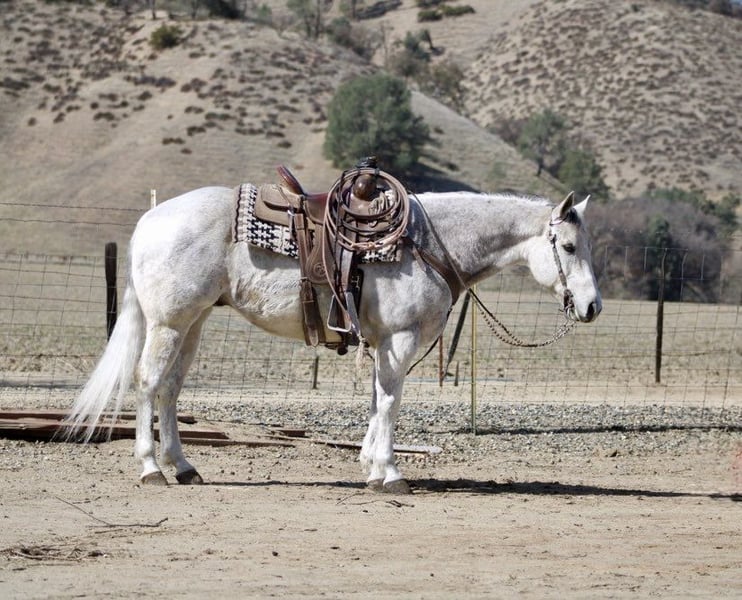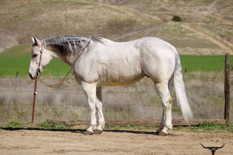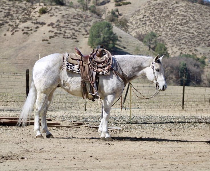 ONLINE AUCTION Place your bids at www.PlatinumEquineAuction.com Starting Bid $3500 Auction ends March 9th, 2025 Need a new saddle? Check out White Rock Saddles on our website or Facebook! Benz – he totally lives up to his name! This guy is all about luxury, comfort, and style. Standing at 14.3 hands he’s a stunning 10-year-old dapple grey beauty that is the perfect size and maturity. He’s got a resume that would impress anyone, from ranch duties to rodeos, and he’s the perfect family horse or trail buddy. Benz is super well-trained; he spins, slides, and has the smoothest transitions in his gaits that makes him just a joy to ride. You can trust him completely! He can chase down a cow or take you on a tranquil trail ride. He’s the most reliable and safe horse you could ever hop on. He can side pass, pivot, and has this rocking chair lope that you could sit on for hours. He’s easy to catch, great for the farrier and vet, and loads and unloads like a champ. He stands tied, and saddling and bridling him is a breeze. He is comfortable in a stall or pasture setting. Benz has gathered cattle in tough terrain and will cross anything – brush, downed trees, and even the deepest water without a fuss. No matter how much time passes, he’s always the same reliable horse. He’s been ridden through busy streets, carried flags, and doesn’t bat an eye at tarps or balls. Whether you’re a cowboy, a seasoned trail connoisseur or just someone looking for a leisurely ride, Benz is your guy. His gentle nature makes him perfect for families with riders of different abilities. This easy-going gelding is such a asset to have around, and he’s in the prime of his life with so much knowledge to share. He has no vices he’s solid, sane, and super smart. We’ve loved every moment with this beautiful gelding, and he’s definitely going to be missed. I can’t imagine anyone not falling in love with his friendly disposition! If you’re interested, feel free to reach out to Longhorn Ranch and set up a time to meet him. You can contact Dina at 831-537-1915. He’s located in Paicines, CA. Trust me, you’re going to love him! ONLINE AUCTION Place your bids at www.PlatinumEquineAuction.com Starting Bid $3500 Auction ends March 9th, 2025 Need a new saddle? Check out White Rock Saddles on our website or Facebook!