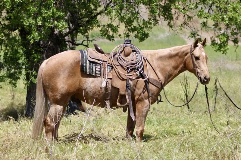 ONLINE AUCTION Place your bids at www.PlatinumEquineAuction.com Starting Bid $3500 Auction ends May 11th, 2025 Need a new saddle? Check out White Rock Saddles on our website or Facebook! Alright, horse lovers, let’s talk about Apollo This 10-year-old 24 karat heart of gold palomino gelding is not just a horse; he’s a 15 hand bundle of charm and reliability. If you’re looking for a safe, bombproof mount for the whole family, this is your guy. Parades? Check. Trails and beaches? Double-check. What I love most is his “point-and-go” style—no drama, just smooth riding whether you’re with a group or solo. Beginners to advanced riders can hop on without a worry. Plus, he’s not just safe, he’s impressively trained. One-hand turnarounds? Perfect lead changes? A stop that’ll make you grin from ear to ear? You don’t even need a bridle he will do anything for you. Yes, yes, and yes! He backs up like a pro with just a gentle touch. Whether you’re hitting the trails or showing off in ranch versatility events, Apollo shines. Flags,tarps, bridges he’s got you covered. This boy can do it all. Traffic is just another day at the office for this unflappable horse trucks, cars and pedestrians no big deal he will calmly walk right past it. Gathering, roping or sorting cattle he’s the top hand ranch horse. Oh, and did I mention he’s a total sweetheart? Easy to catch, chill during tacking and bath time (he might even snooze!), and a gem for grooming and great for the farrier. He hops in any trailer ready to go see new sights. Stalls,pastures great. Trust me, this horse is the real deal. Contact Dina at Longhorn Ranch 831-537-1915 in Paicines, CA, and prepare to be amazed. ONLINE AUCTION Place your bids at www.PlatinumEquineAuction.com Starting Bid $3500 Auction ends May 11th, 2025 Need a new saddle? Check out White Rock Saddles on our website or Facebook!
