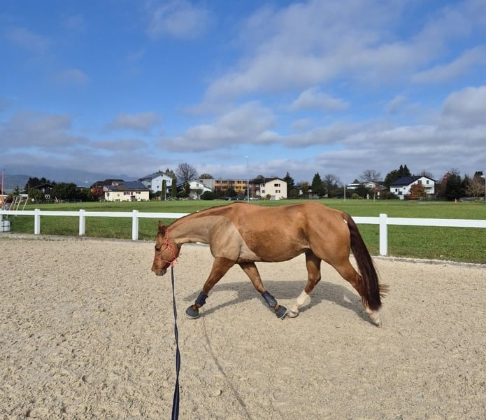 Verkaufe American Quarter Horse Wallach Dun It On The QT x Legends Fantasy Zum Verkauf steht ein wunderschöner American Quarter Horse Wallach, geboren im Jahr 2014. Bomb prove 7/10 Red Dun Begeistert durch sein ruhiges Wesen sowie seinen "Will to please". Gut ausgebildet und zuverlässig. 30 km von Lindau (Bodensee). Bei Interesse und für weitere Informationen stehe ich gerne zur Verfügung. Eine Besichtigung und Proberitt sind nach Vereinbarung möglich.