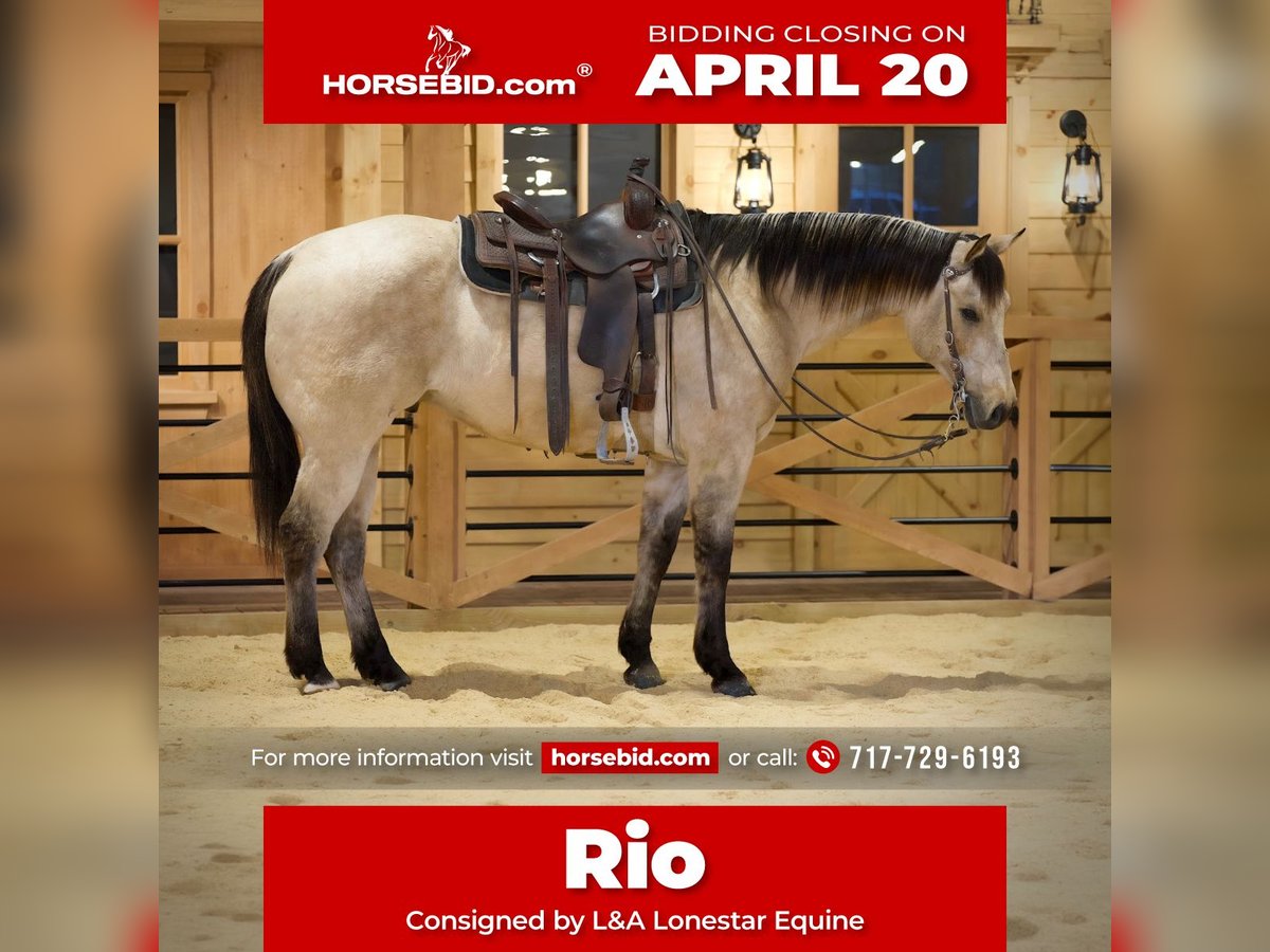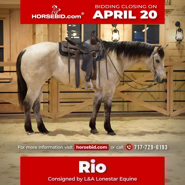 ⚜️𝐭𝐡𝐞 𝓔𝓵𝓲𝓽𝓮 𝐒𝐩𝐫𝐢𝐧𝐠 𝐂𝐥𝐚𝐬𝐬𝐢𝐜⚜️ Happening now thru MONDAY | APRIL 20th - Available EXCLUSIVELY on HorseBid's website! For more details and to register visit: www.Horsebid.com CONSIGNOR CONTACT: L&A Lonestar Equine 717-729-6193 LOCATION: Needmore, PA BREED: Quarter Horse REGISTERED: No REGISTERED NAME: Rio COLOR: Buttermilk buckskin HEIGHT: 15.1 AGE: 11 GENDER: Gelding Standing 15.1 hands tall, this beautiful buttermilk buckskin is the kind that turns heads everywhere he goes. He has that rich golden coat with a soft cream mane and tail that gives him a standout look in any setting, whether in the arena, on the trail, or around the farm. Beyond his looks, he is truly broke, dependable, and as safe as they come. He is very well trained and suitable for riders of all levels, making him an excellent choice for beginners, kids, or anyone looking for a quiet, trustworthy partner. He is the same horse every time you saddle him—steady, honest, and willing to do his job without any fuss or unpredictability. You can give him time off, bring him back out, and he will be exactly the same horse each and every time. On the trail, he is confident and sure-footed. He handles rough terrain, water, brush, and new environments with ease, staying relaxed and focused no matter what he encounters. He rides out well alone or in a group and doesn’t get easily bothered by traffic or changes in scenery, making him a dependable and enjoyable trail partner. In the arena, he is just as reliable. He is handy and responsive, with a smooth one-hand neck rein that makes him easy to guide and fun to ride. He has a nice turnaround, a solid and dependable stop, and moves off leg pressure willingly. He stays soft in the bridle and works with you, whether you’re doing light arena work, practicing patterns, or just enjoying a casual ride. Around the farm, he is calm and accustomed to daily activity. He handles equipment, livestock, and busy surroundings with a quiet, level-headed attitude. He is the type you can saddle after time off, weeks or even longer, and still expect the same calm, broke, and dependable ride every time. Overall, this buckskin is the complete package—beautiful, safe, consistent, and versatile. Whether you need a family-safe horse, a reliable trail partner, or a handy all-around mount, he checks every box and then some. Feel free to call Lane at 717-729-6193 for any questions.