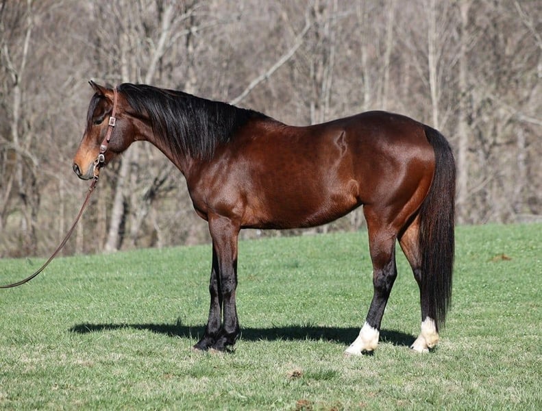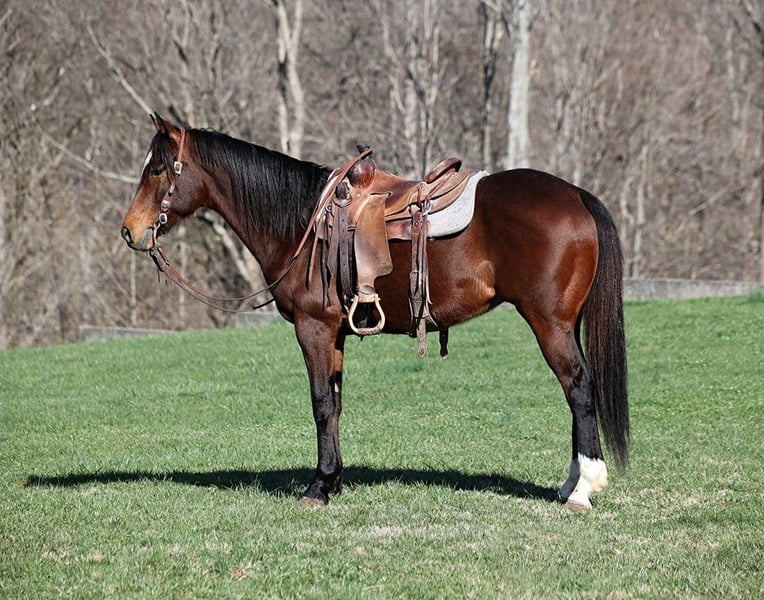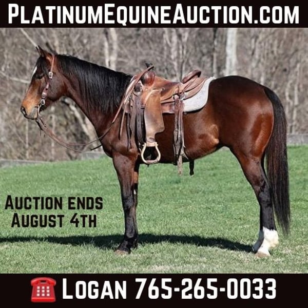 ONLINE AUCTION Place your bids at www.PlatinumEquineAuction.com Starting Bid $3500 Auction ends August 4th, 2024 Need a new saddle? Check out White Rock Saddles on our website or Facebook! Arnold is a stout built Bay gelding standing around 15.1hh and he is 9 years old. Arnold has been used on a feedlot and has been used to roped and doctor sick ones. He knows his way around the ranch and has plenty of cow sense. He has also penned cattle in the stockyards and loaded trucks. Arnold is an excellent working horse but is just as happy to go out and have a relaxing trail ride as he is great on trails and he will cross creeks, ditches, logs and navigate rough rocky areas. He has a smooth jog, a VERY VERY nice easy to set lope, a good stop, turns a circle both ways and backs with ease! He has been exposed to all kinds of wildlife such as deer or turkey or other animals like cows or dogs and will go anywhere that he is asked too. He has been rode many miles in the mountains of Eastern Kentucky and encountered every obstacle possible on the trail. He will go up or down even the steepest slopes, across deep creeks, over downed trees, and over all types of rough terrain while still being sure footed. Arnold is an excellent horse for any job around the ranch or trails! He is located in Level Green, KY. Feel free to call Moore Trained Horses Logan 765-265-0033 with any questions. ONLINE AUCTION Place your bids at www.PlatinumEquineAuction.com Starting Bid $3500 Auction ends August 4th, 2024 Need a new saddle? Check out White Rock Saddles on our website or Facebook!