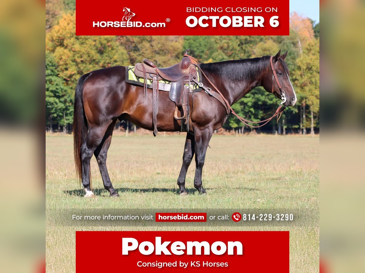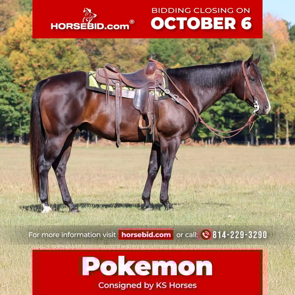 🍂 𝓐𝓾𝓽𝓾𝓶𝓷 𝑨𝑳𝑳 𝑺𝑻𝑨𝑹 𝑳𝑰𝑵𝑬𝑼𝑷 🍂 Happening now thru MONDAY | OCTOBER 6th - Available EXCLUSIVELY on HorseBid's website! For more details and to register visit: www.Horsebid.com CONSIGNOR CONTACT: KS Horses 814-229-3290 LOCATION: Clarion, PA BREED: QH REGISTERED: Yes REGISTERED NAME: Zippo Sudden Krymsun COLOR: Black/ Bay HEIGHT: 15.1 AGE: 10 GENDER: Gelding Zippo Sudden Krymsun is a Registered American Quarter Horse Gelding. His barn name is Pokémon. Pokémon is a super nice all around horse. If you want a horse that is proven in all aspects from most importantly being safe , to being super broke then here he is . He has been shown some in the ranch pleasure classes. He will have a nice slow jog and trot and a nice slow rocking chair lope. He will lope off from a stand still and always hits his correct leads. Watch his video and watch us ride and lope him around with no bridle and no neck rein. He has tons of training. If you want just a good trail horse then he is exactly that also . Great on the trails and sure footed in the rough terrain. Great neck rein and side pass. Even though he has tons of training you can also just throw a beginner on him and let them ride him around like a farm horse. He is not complicated at all to ride. Pokémon is truely one-of-a-kind horse. If you want the whole package then check out Pokémon!! He is as good as they come!! Call or Text Kris at 814-229-3290. We can help arrange delivery anywhere in the United States. Thank you and God Bless