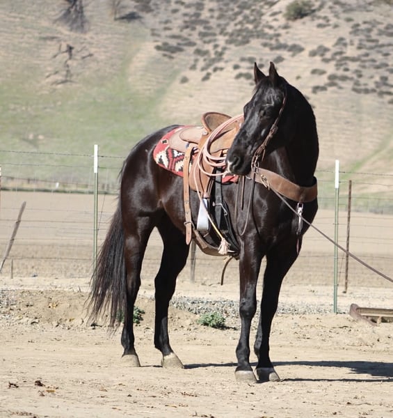 ONLINE AUCTION Place your bids at www.PlatinumEquineAuction.com Starting Bid $3500 Auction ends January 4th, 2025 Need a new saddle? Check out White Rock Saddles on our website or Facebook BLACKBERRY — 15.1 Hands • 11-Year-Old Black Gelding English or Western • Collected • Smooth • Elegant • Trail-Confident Blackberry is the kind of black gelding that makes people look twice — not just because he’s jet-black and good looking, but because he carries himself with a refined, classy style that you can feel the moment you swing a leg over. He has a smooth, fluid way of moving, a naturally balanced frame, and that “put together” ride that’s hard to find. He rides English or Western and does it with the same quiet confidence. Blackberry is soft in the bridle, willing to stay collected, and has an elegant feel without being dull. His gaits are comfortable and easy to sit, and his transitions are smooth and enjoyable — the kind that make you feel like you’re riding a horse that’s been brought along the right way. He settles in, stays with you, and makes the ride feel easy. On the trails he is — relaxed, and content to travel out and cover country. He goes along with a steady, confident attitude and doesn’t act like every new thing is a reason to get worried. He’s been over bridges and tires, handles obstacles with a level head, and keeps his rider feeling secure. Add in pool noodles, tarps, and the usual “trail surprises,” and he stays the same kind of horse — thinking, listening, and moving through it without making a big deal. He’s also easy to have in your day-to-day program. Blackberry is easy to tack up, stands for what you need, and is pleasant to be around. He does well in a group setting and rides out nicely with other horses, and he’s also comfortable venturing out — whether that means leaving the barn alone or just being the one that leads the pack when everyone else wants to stop and stare. He’s the type that lets you go enjoy your ride instead of managing your ride. Blackberry is happy being kept in a stall or turned out in pasture, and he settles in well either way. If you’re looking for a gelding with a polished, classy feel in the arena and a steady, happy mind on the trails, Blackberry is one you’ll be proud to have in your barn. For more info or to come try him: Longhorn Ranch — Dina 📞 831-537-1915 📍 Paicines, CA ONLINE AUCTION Place your bids at www.PlatinumEquineAuction.com Starting Bid $3500 Auction ends January 4th, 2025 Need a new saddle? Check out White Rock Saddles on our website or Facebook