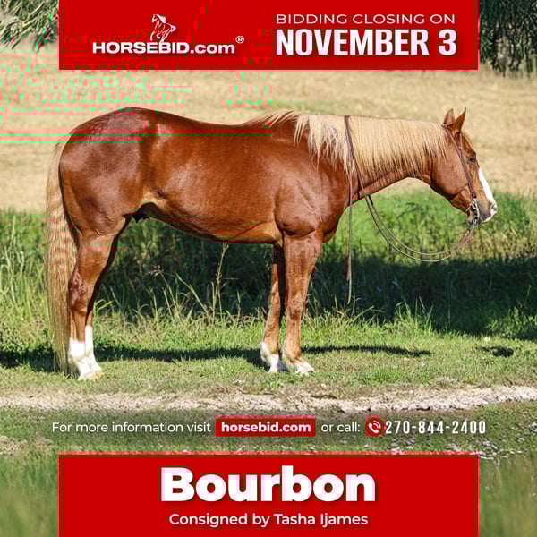 ⚜️𝐓𝐇𝐄 𝐅𝐀𝐋𝐋 𝐇𝐄𝐑𝐈𝐓𝐀𝐆𝐄 𝐂𝐋𝐀𝐒𝐒𝐈𝐂⚜️ Happening now thru MONDAY | NOVEMBER 3rd - Available EXCLUSIVELY on HorseBid's website! For more details and to register visit: www.Horsebid.com CONSIGNOR CONTACT: Tasha Ijames 270-844-2400 LOCATION: Henderson, KY BREED: Quarter Horse REGISTERED: No REGISTERED NAME: Bourbon COLOR: Sorrel HEIGHT: 15.2 AGE: 10 GENDER: Gelding Bourbon is the family-safe trail horse everyone is looking for and the true definition of a unicorn that is absolutely safe for everyone. Bourbon is 10yrs old and stands about 15.2 hands tall and has a gorgeous flax mane and long full tail. He has been extensively trail rode, rode in parades and shown by a 65yr old lady for the past 7years. Her health declined and was unable to ride anymore is the only reason he came up for sale. Bourbon is the type of horse that if you can sit in the saddle and hold the reins you can ride Bourbon and he will take care of you. These don’t come available very often and he’s definitely a one of a kind. He is a point and go type of horse. He has been hauled and trail ridden extensively through many different types of terrain. He is sure footed and honest. Bourbon is not spooky and will cross creeks, go through any body type of water, thick brush, logs, bridges, rough terrain and up and down cliffs with ease. He has been rode on the road and is use to all kinds of traffic, heavy machinery and ATV’s. He is also dog safe. You can ride Bourbon out alone with ease or with other horses. He will make a great horse for any level of rider. Bourbon will neck rein or you can ride him two handed, W/T/C, and has a nice slow lope, hauls good, bathes good, stands good for farrier and to be saddled and mounted. Suitable for any level rider. Great on picket line and over night camping. He stands quiet with no nonsense. He is easy to catch and loves attention. Bourbon is great in a stall or you can turn him out on pasture. Don’t miss out on your opportunity to own such an amazing horse that will work for the whole family and one you can trust and enjoy. If you’re looking for safe, calm, confidence builder, beauty and kindness Bourbon is your guy. We invite anyone and everyone to come meet and ride Bourbon at our barn in Henderson, Kentucky. We work with several shippers and are gladly to assist with transportation arrangements. PPE at buyers expense are welcomed. Contact Tasha at 270-844-2400 for any and all questions.