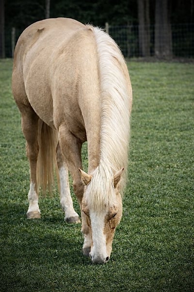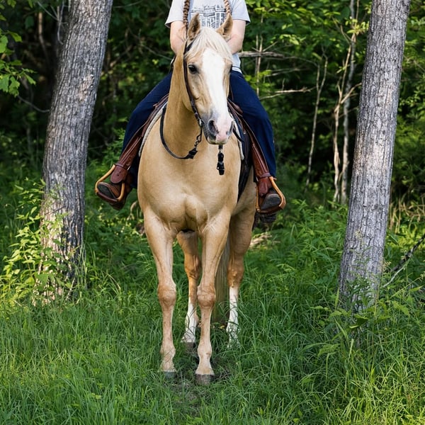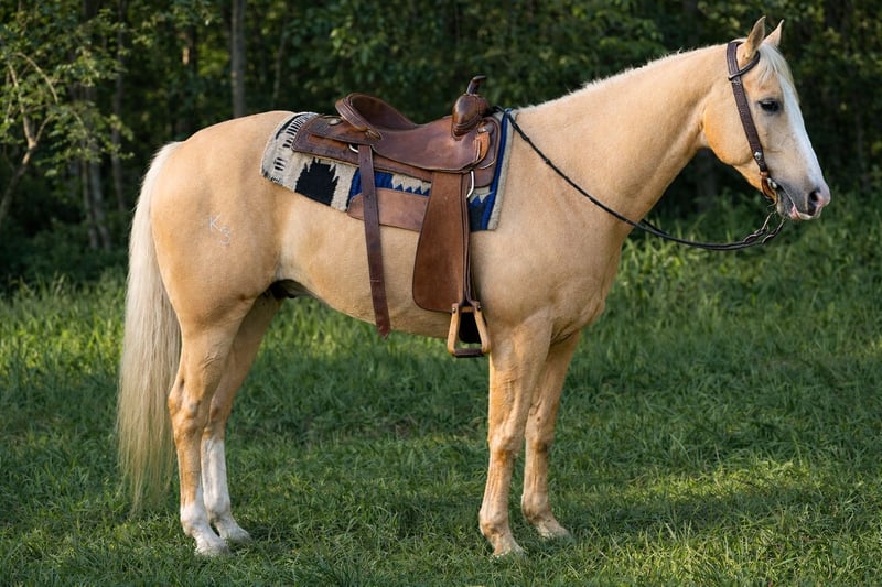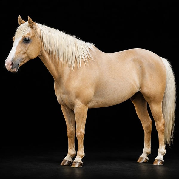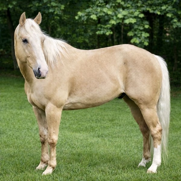 Gunner, un semental de 11 años, palomino, de 1,52 m, de raza Quarter Horse.